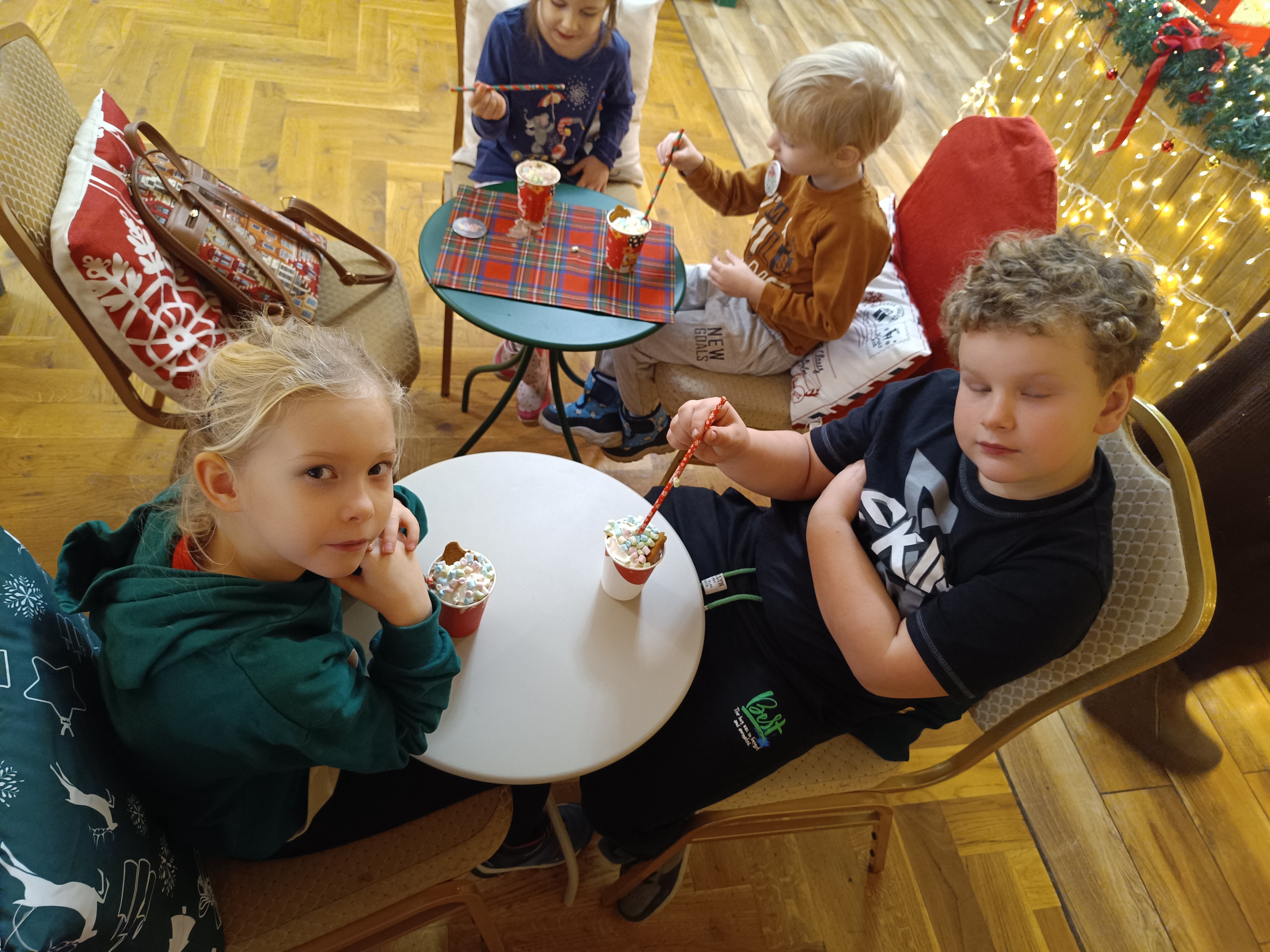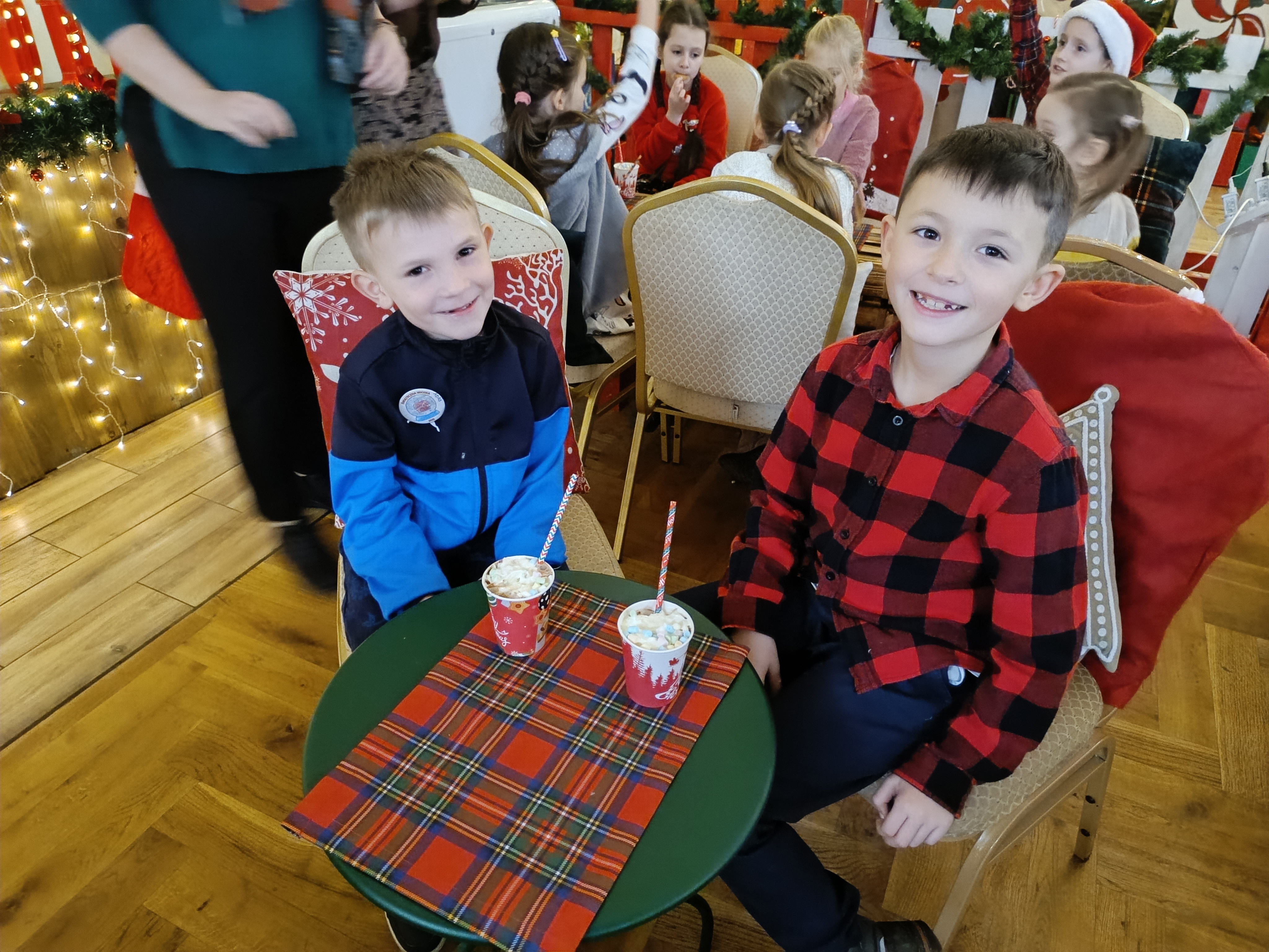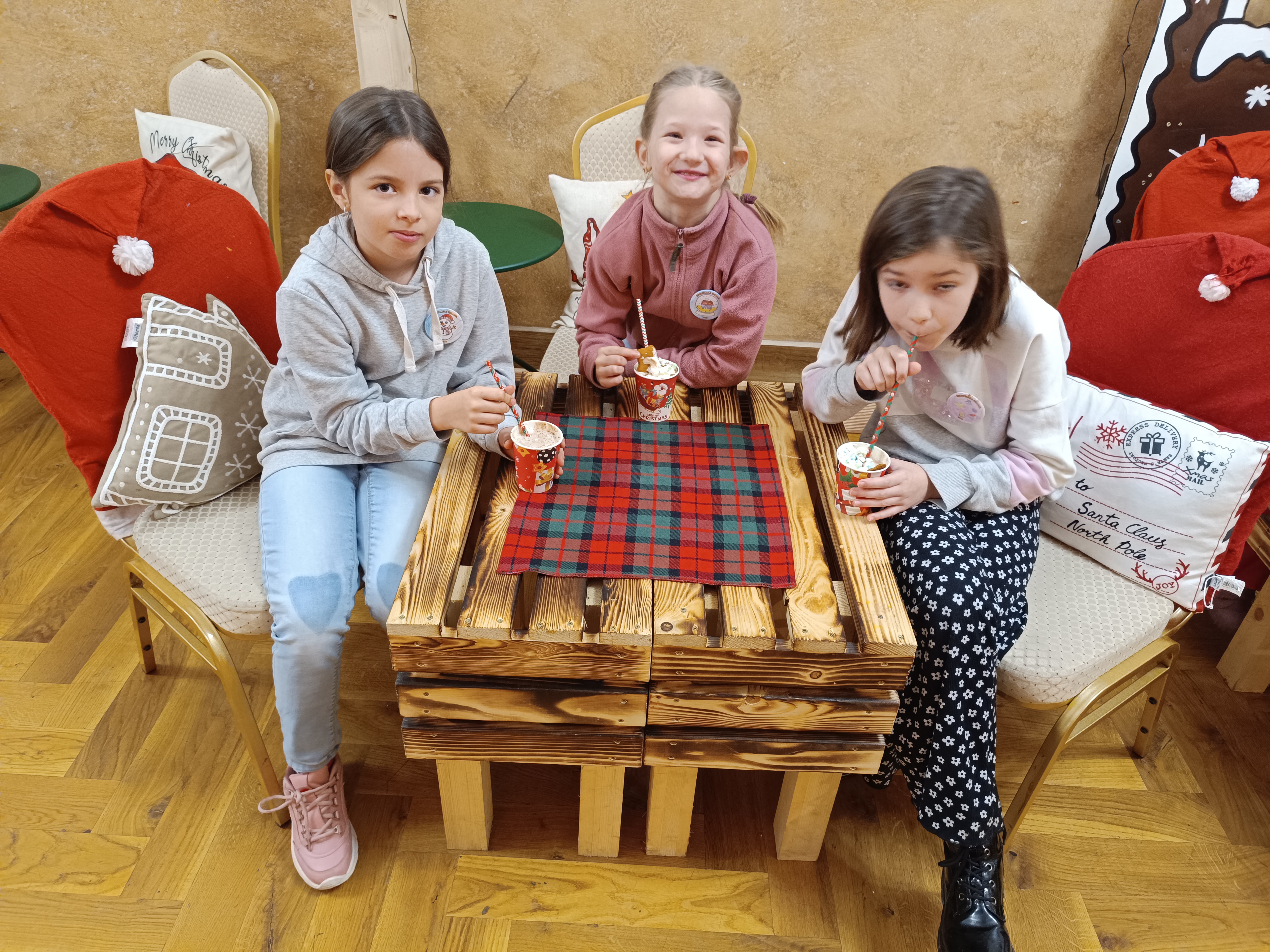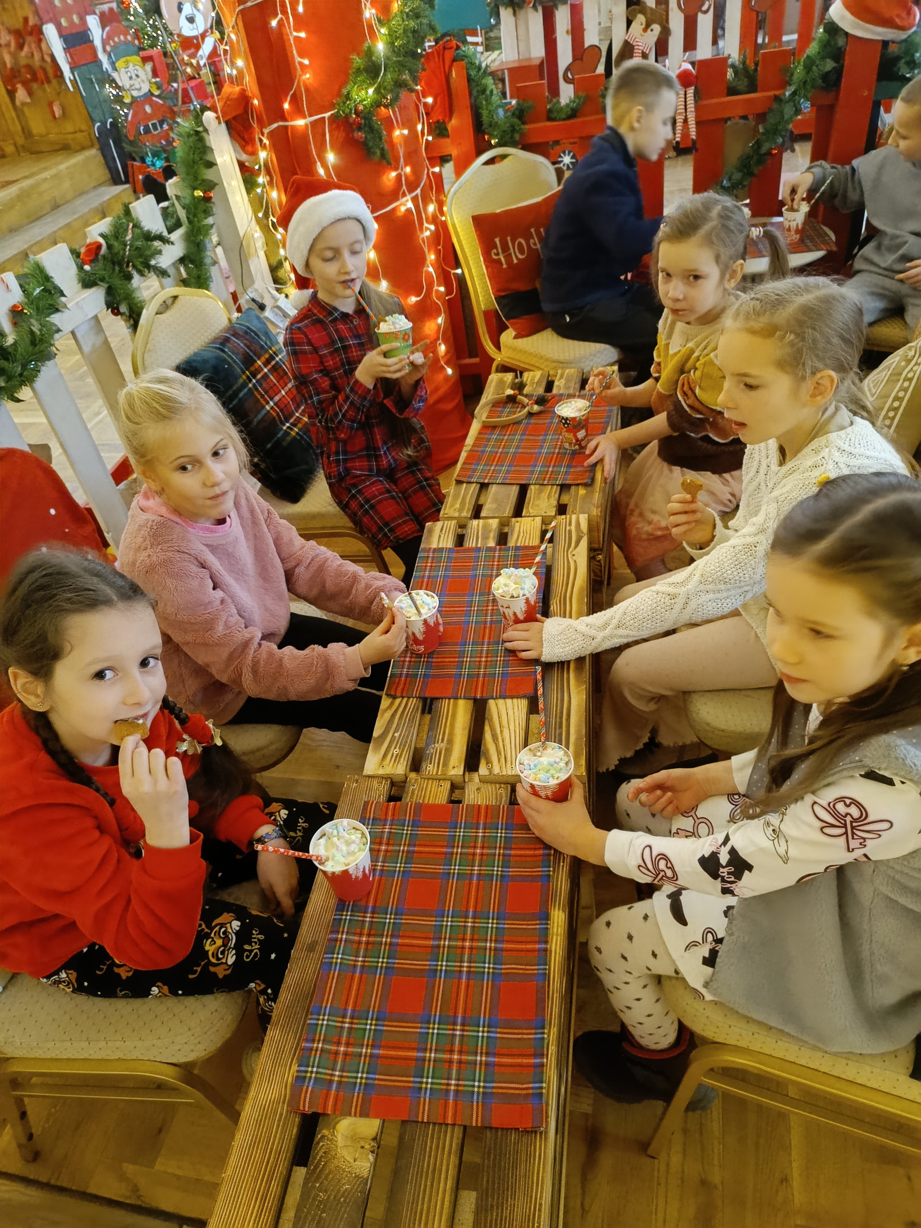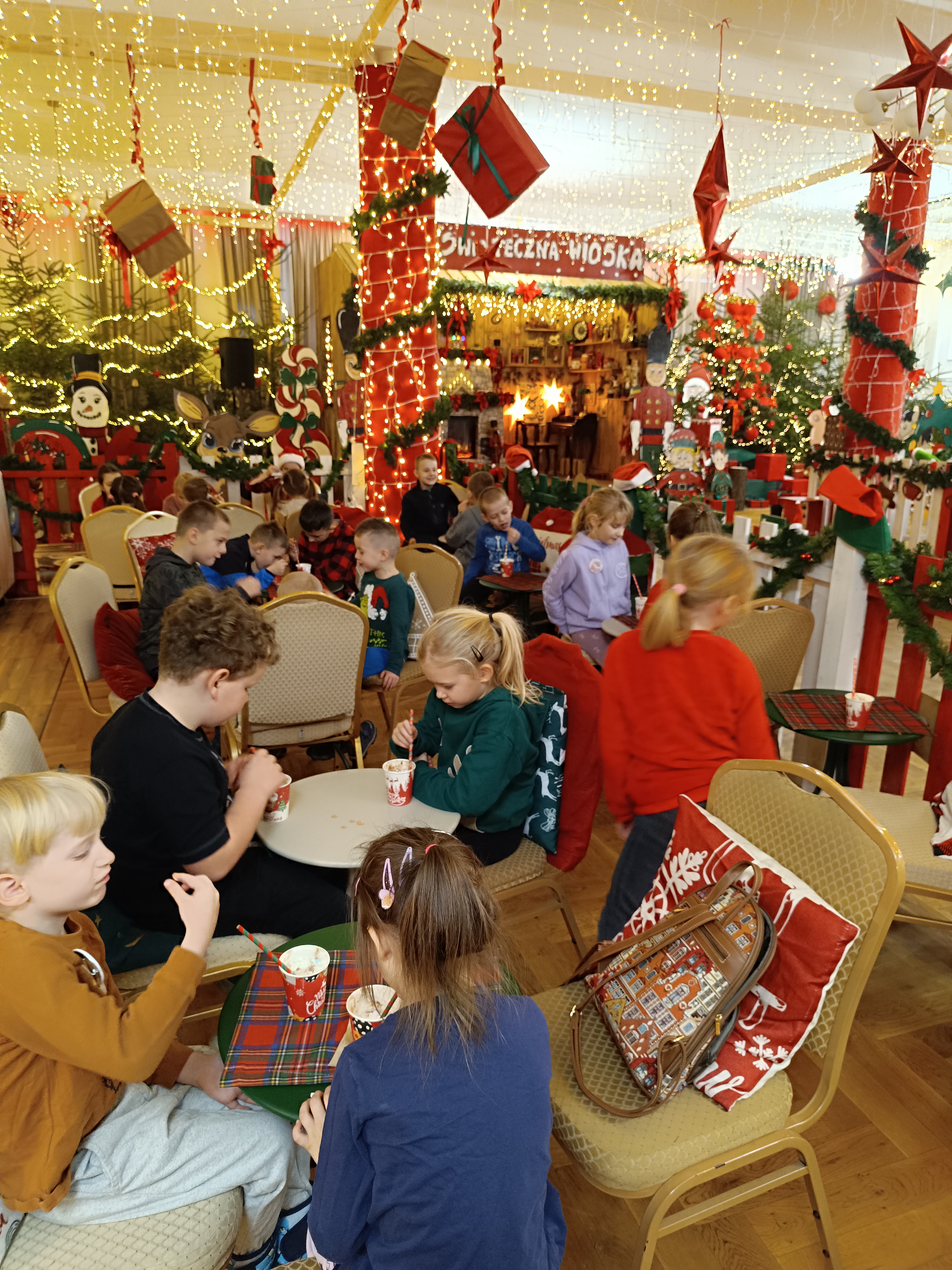 Dzieci z oddziału przedszkolnego oraz klas 1 -3 wybrały się na wyjątkową wycieczkę do Świątecznej Wioski w Koniakowie. Już od pierwszych chwil zachwycały się cudownymi, bajkowymi dekoracjami, które wprowadzały w prawdziwie świąteczny nastrój.Podczas warsztatów każdy uczestnik mógł wykonać własny, niepowtarzalny magnes oraz przypinkę, co sprawiło najmłodszym wiele radości i satysfakcji. Po twórczej pracy czekała na dzieci pyszna gorąca czekolada, ufundowana przez Radę Rodziców – serdecznie dziękujemy za ten słodki prezent!