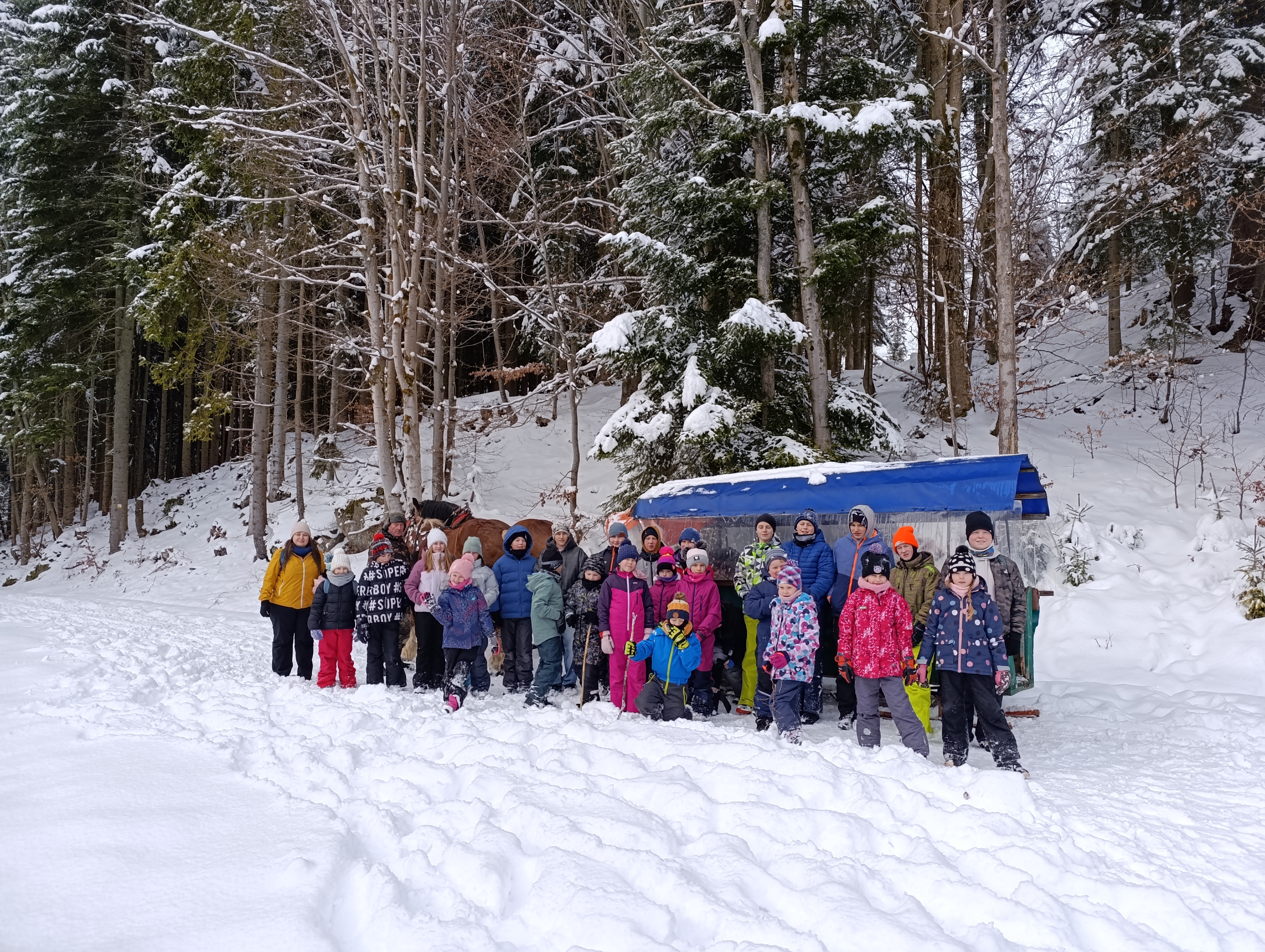 Czwarty dzień był wyjątkowo bogaty w wydarzenia. Rano dzieci wzięły udział w zajęciach kulinarnych, podczas których przygotowywały gofry. Następnie odbyło się spotkanie z panią leśnik z Nadleśnictwa Wisła, która w ciekawy sposób opowiadała o zwierzętach i roślinach występujących w Beskidach, górskich wyprawach oraz zasadach bezpieczeństwa w górach. Kolejną atrakcją był kulig w stronę Gańczorki, zakończony grillem z pieczonymi kiełbaskami, zabawami na śniegu oraz grami integracyjnymi. Ważnym elementem dnia były także rozmowy na temat przeciwdziałania wykluczeniu i hejtowi oraz promowanie empatii i wzajemnego szacunku.