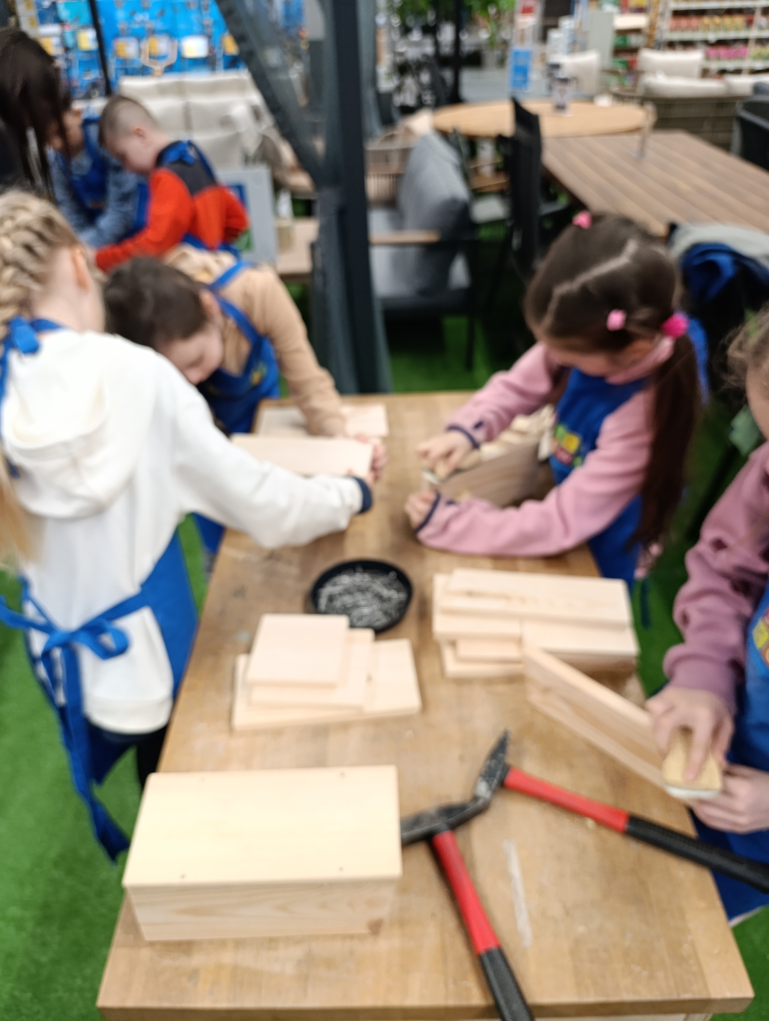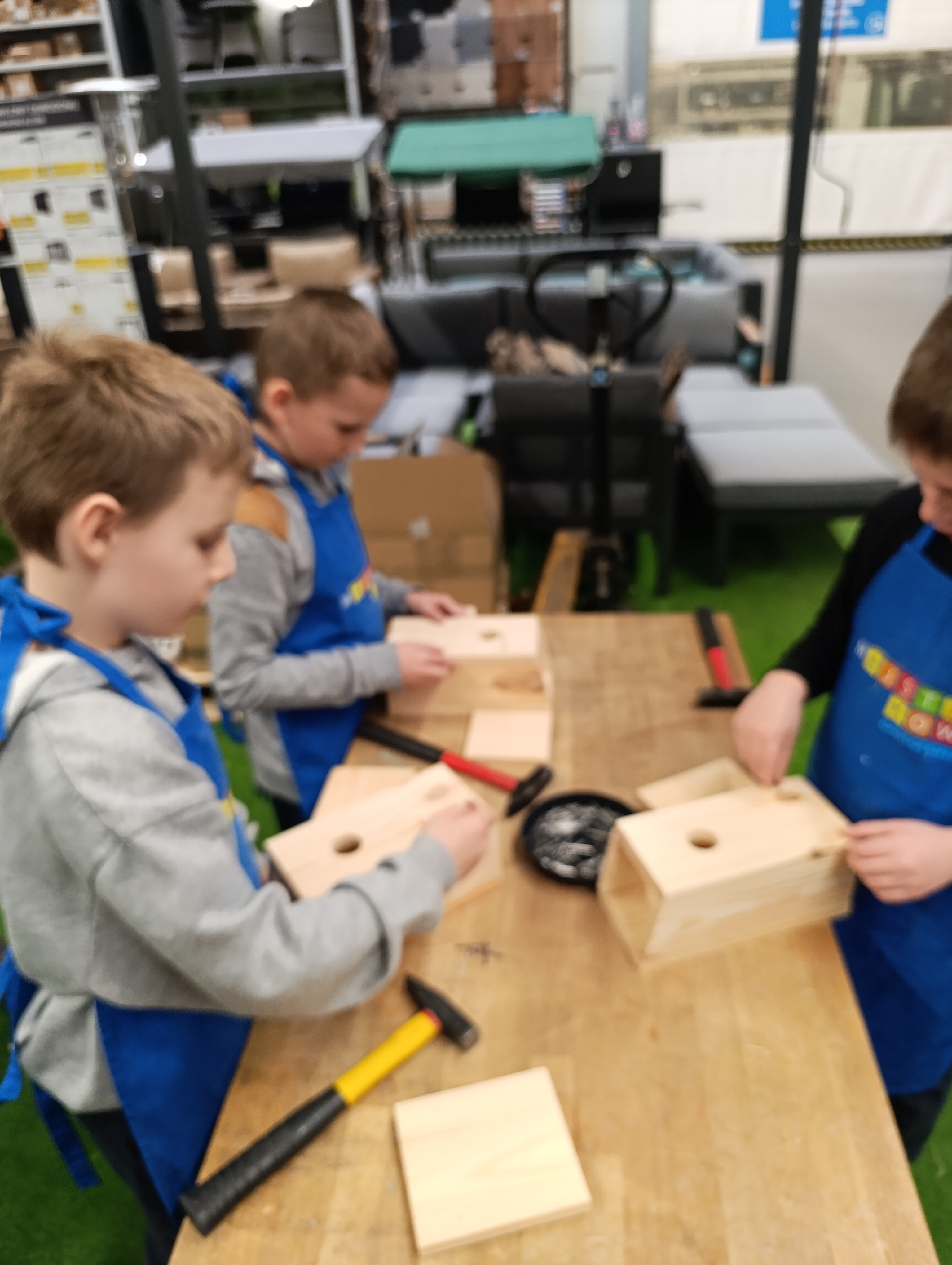 12 marca uczniowie klas 1–3 wzięli udział w warsztatach majsterkowania zorganizowanych w Castoramie. Podczas zajęć dzieci miały okazję rozwijać swoje zdolności manualne oraz pobudzać wyobraźnię, samodzielnie wykonując budki lęgowe dla ptaków.Pod okiem prowadzących uczniowie z dużym zaangażowaniem zbijali gwoździami drewniane deski, tworząc konstrukcje budek. Następnie ozdabiali je według własnych pomysłów, wykazując się kreatywnością i starannością. Warsztaty były doskonałą okazją do odkrywania nowych pasji oraz rozwijania umiejętności pracy ręcznej.