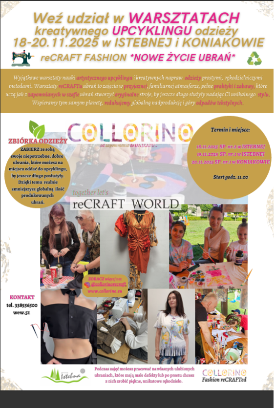 Warsztaty upcyklingu dla uczniów naszej szkoły odbędą się w dniu 18 listopada br. od godziny 11-15
