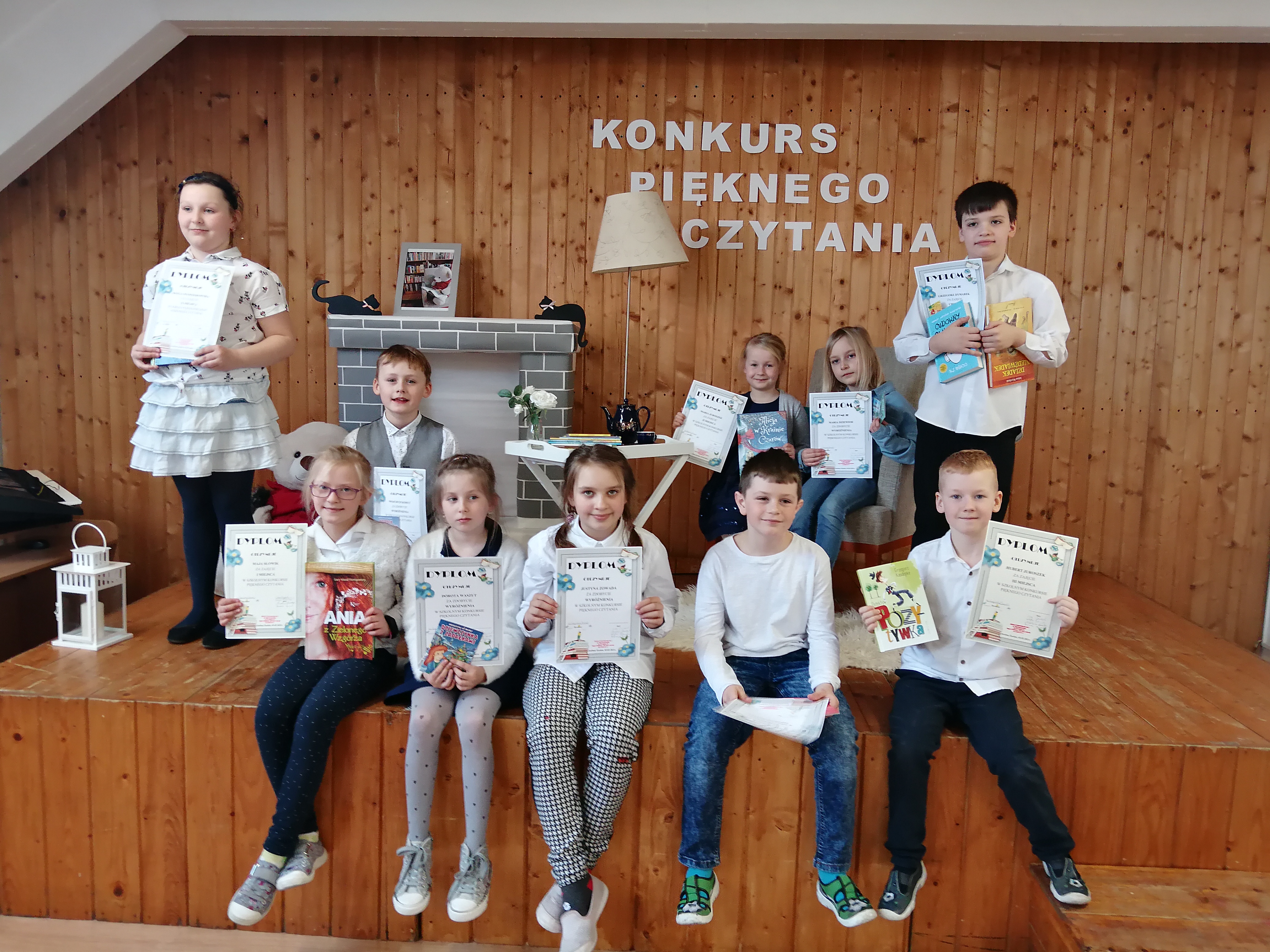 Na początek pan dyrektor Bogdan Ligocki nawiązał do obchodzonego 21 lutego Dnia Języka Ojczystego i opowiedział kilka ciekawostek dotyczących języka polskiego. Następnie pani Ewa Czulak, usiadłszy wygodnie w miękkim fotelu, przeczytała jedną z ulubionych opowieści dla dzieci o żółwiu Franklinie, który czytał swoim kolegom.Po takim wstępie zaprosiła wszystkich małych uczestników, począwszy od klasy 0, aby zaprezentowali fragmenty przygotowanych książek. Każdy z nich przedstawił swoją interpretację utworu, swój sposób i tempo czytania. Z ogromną jednak przyjemnością patrzyliśmy na bardzo skupione i „zaczytane” twarze. Wysłuchaliśmy fragmentów:”Magicznego drzewa”, „Mikołajka”, „Martynki”, „Niedźwiadka Wojtka” i jeszcze wielu innych. Niektórzy tak się zapamiętali w tym czytaniu, że trzeba było im podziękować, żeby inni też mogli wystąpić! Tym razem w jury znalazły się panie:Ewa Czulak, Monika Baraniok, Barbara Dymarek, Sławomira Patyk, Mirosława Haratyk i Edyta Kukuczka. Po krótkiej naradzie postanowiłyśmy, że wszyscy uczestnicy zostaną nagrodzeni. Każdy otrzyma książkę, by nie zaprzestał w praktykowaniu tej jakże niedocenianej i niemodnej w dzisiejszych czasach formy spędzania wolnego czasu. Gratulujemy wszystkim małym czytelnikom !