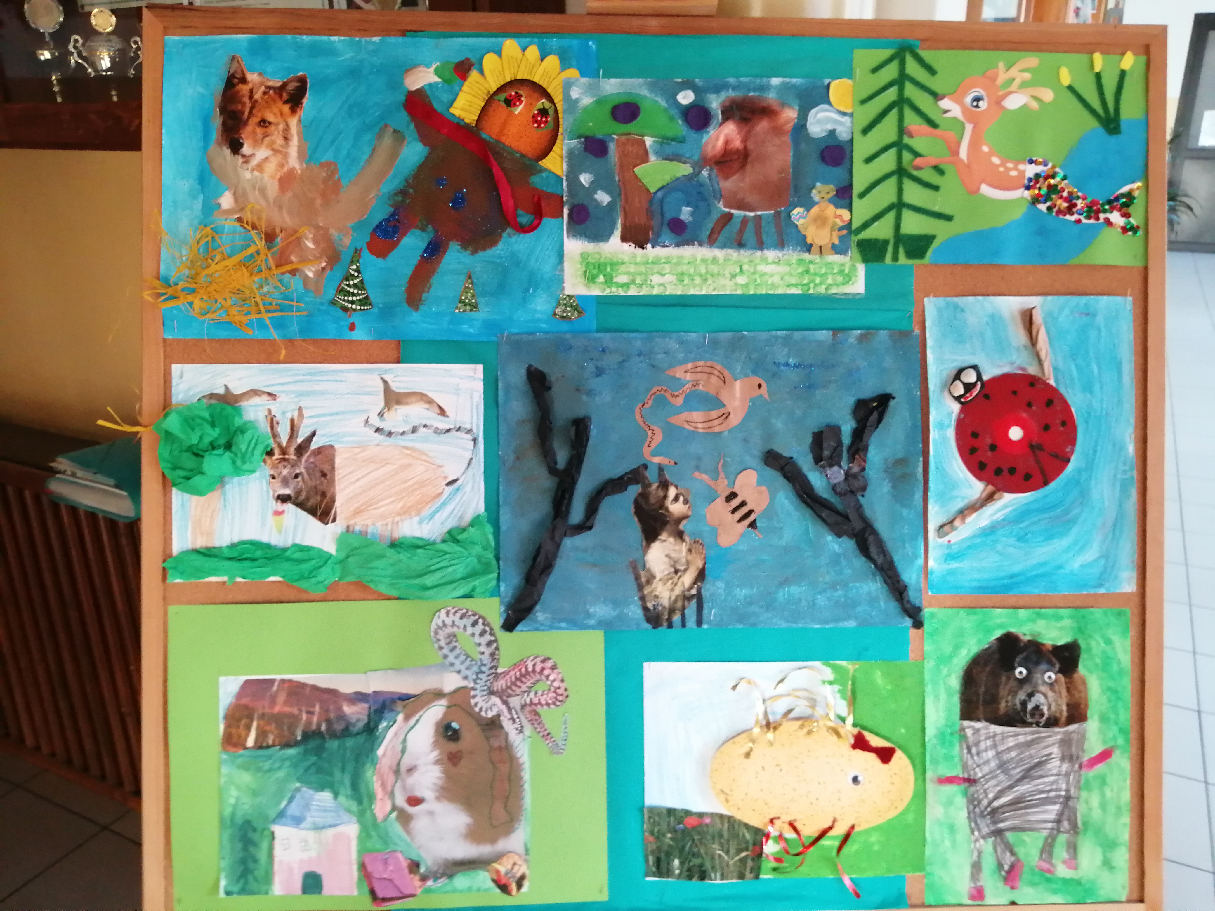 Zanim jednak nastąpiło oficjalne otwarcie pracowni p. Edyta Kukuczka zadbała o przygotowanie specjalnych zaproszeń a p. Anna Dziewior zaprezentowała efekty konkursu na prezentacja multimedialną pt. Parki Krajobrazowe Beskidu Śląskiego. Pani Magdalena Krężelok ogłosiła konkurs plastyczny na kolaż pt. “My- mieszkańcy lasu”, w którym wzięły udział klasy 0 – 4. Barwne i pomysłowe prace dzieci ozdobiły szkolny korytarz, a na scenie powstała ciekawa, nowoczesna dekoracja w odcieniach zieleni.