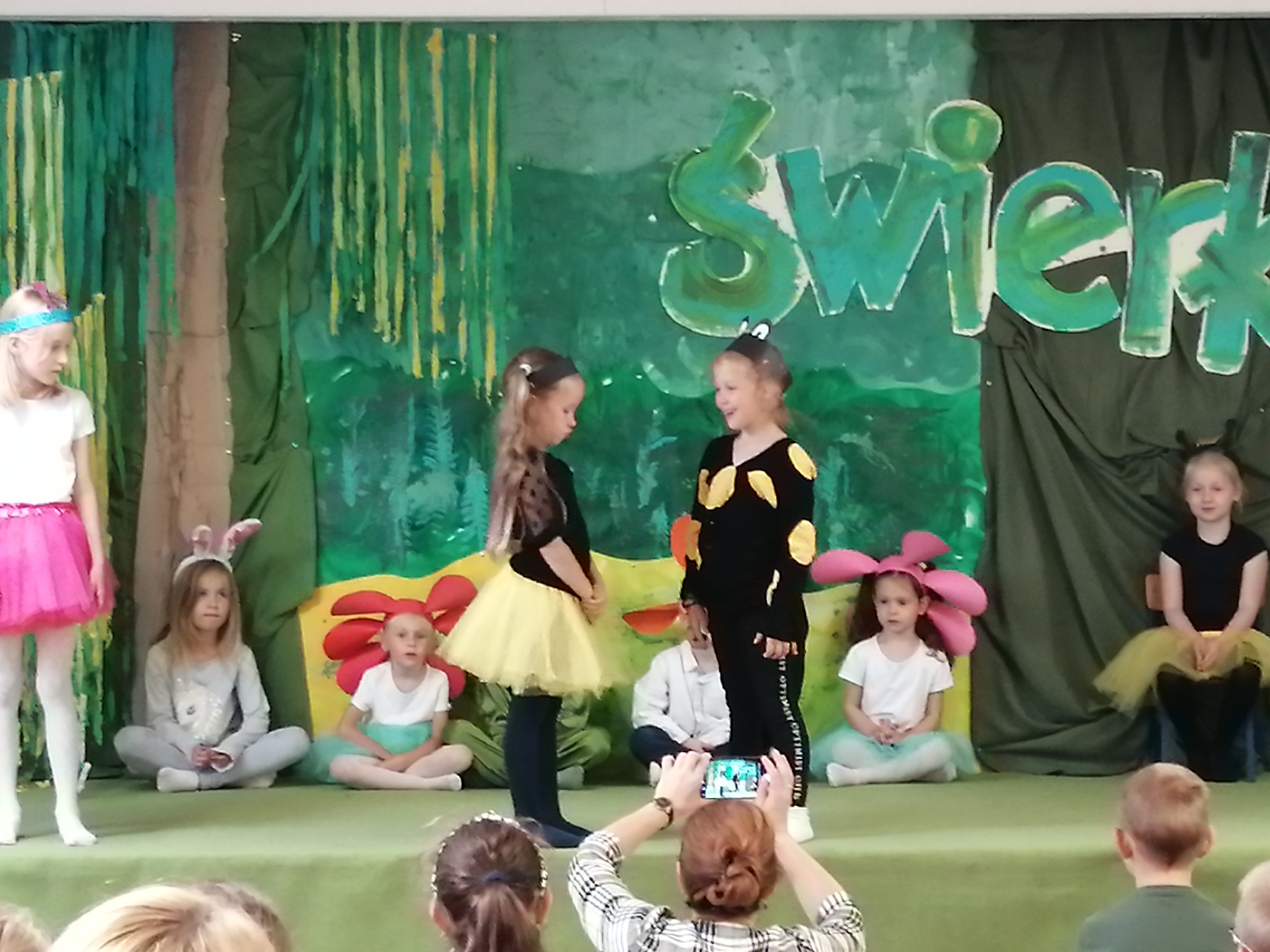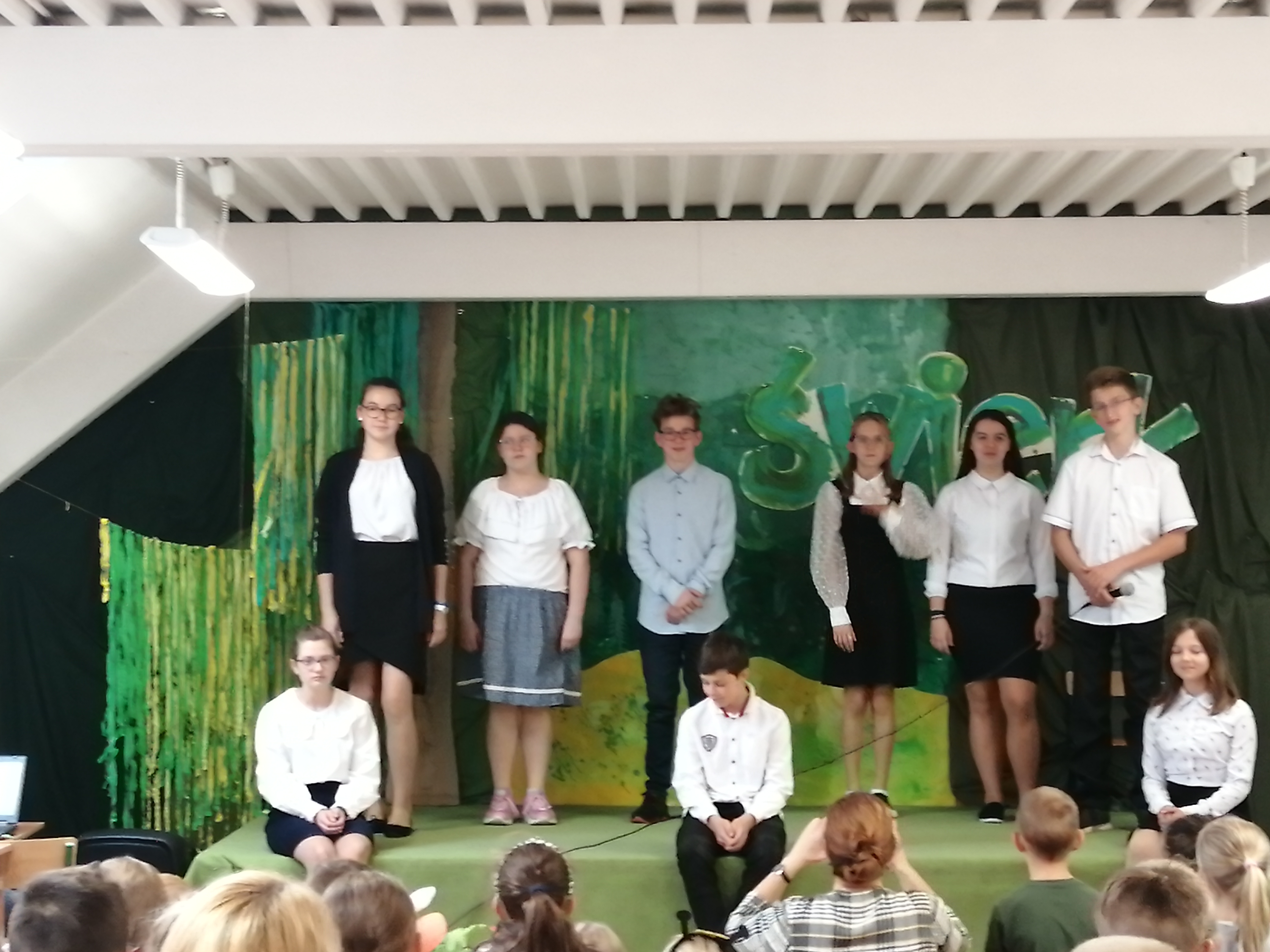 Przy tworzeniu scenografii pomagali uczniowie kl.4: Ewelina Bocek, Dominika Legierska, Martyna Bury, kl.6: Maja Kukuczka, Szymon Waszut, Tobiasz Marekwica, Jonasz Legierski,