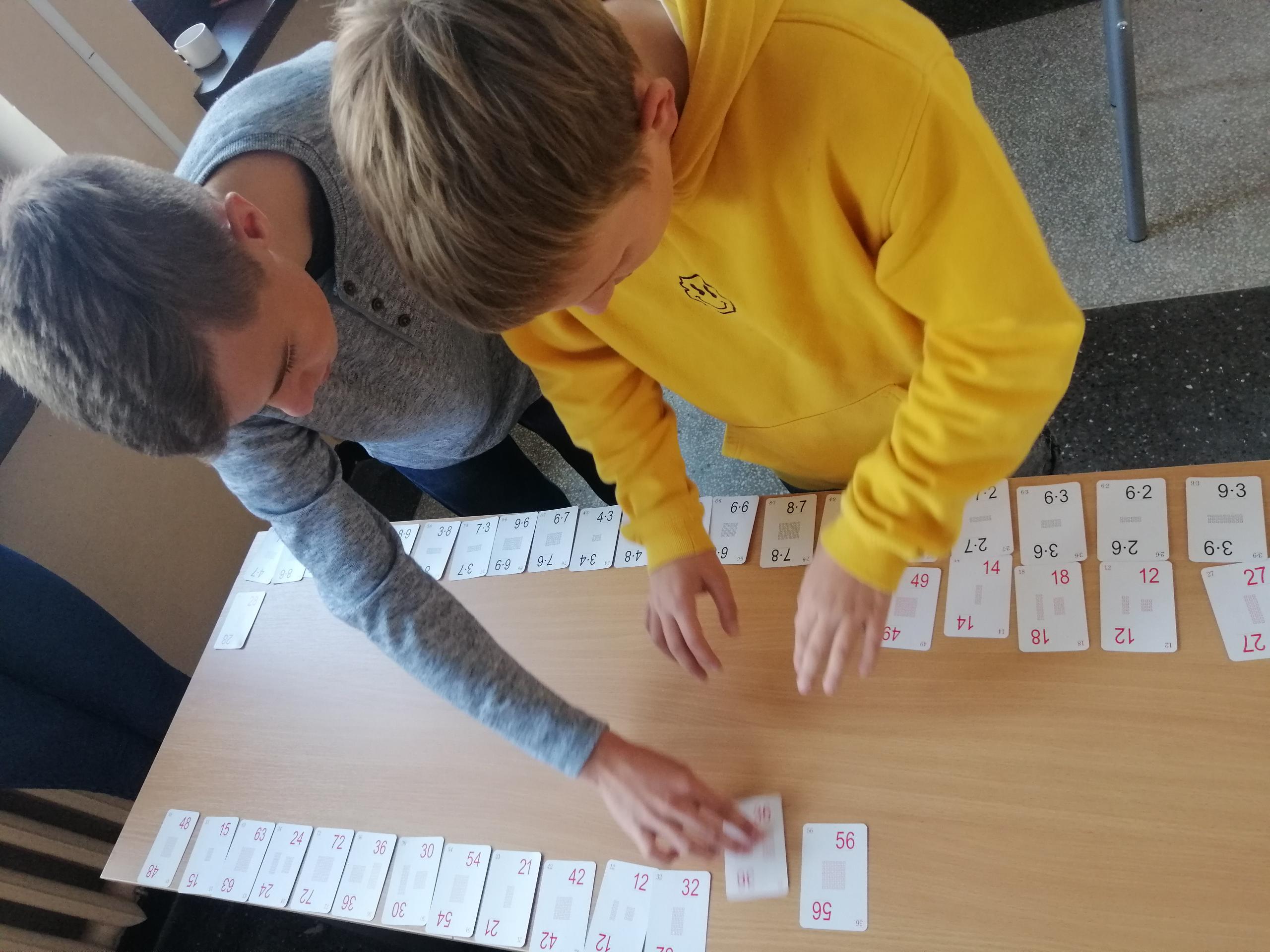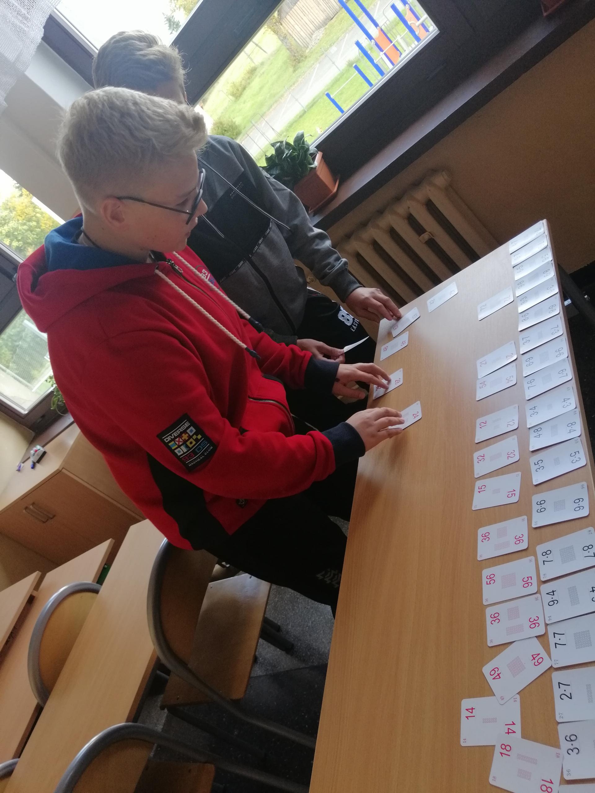 01.10.2021 r. wybrani egzaminatorzy sprawdzali znajomość tabliczki mnożenia we wszystkich klasach w szkole. Uczniowie wykonywali obliczenia na wylosowanych niewielkich karteczkach z działaniami. W każdej klasie wyróżniono osobę, która najszybciej wykonała poprawne obliczenia, została ona klasowym mistrzem tabliczki mnożenia.