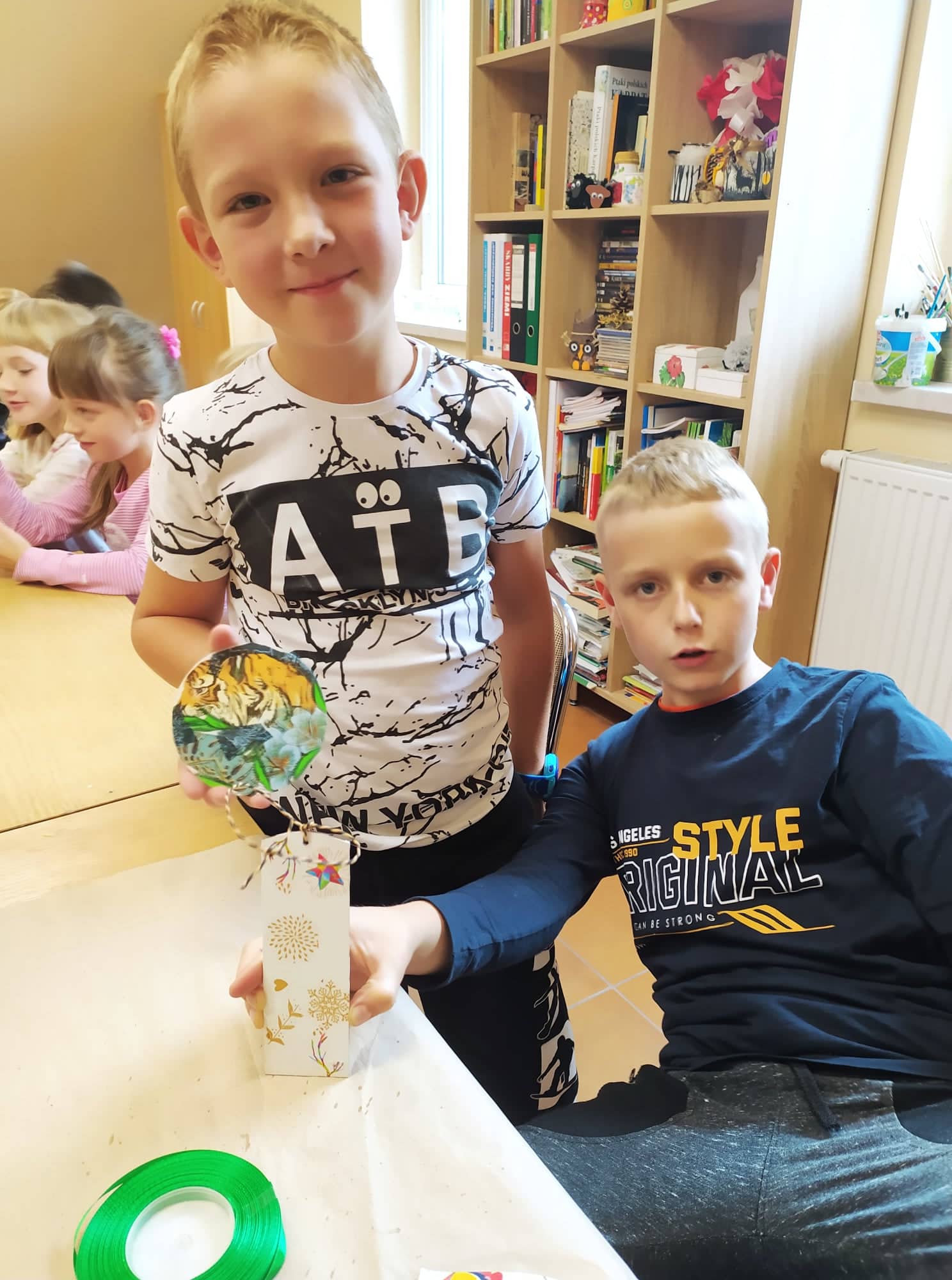 Drugiego dnia powitał nas deszczowy poranek, ale to nie powód do nudy. Po śniadaniu i pakowaniu poszliśmy na zajęcia do świetlicy wyposażonej w różne gry, książki i gabloty z okazami przyrodniczymi. Potem uczestniczyliśmy w warsztatach z decoupage. Każdy zrobił sobie własnoręcznie piękną pamiątkę z pobytu, a niektórzy dla swoich bliskich.