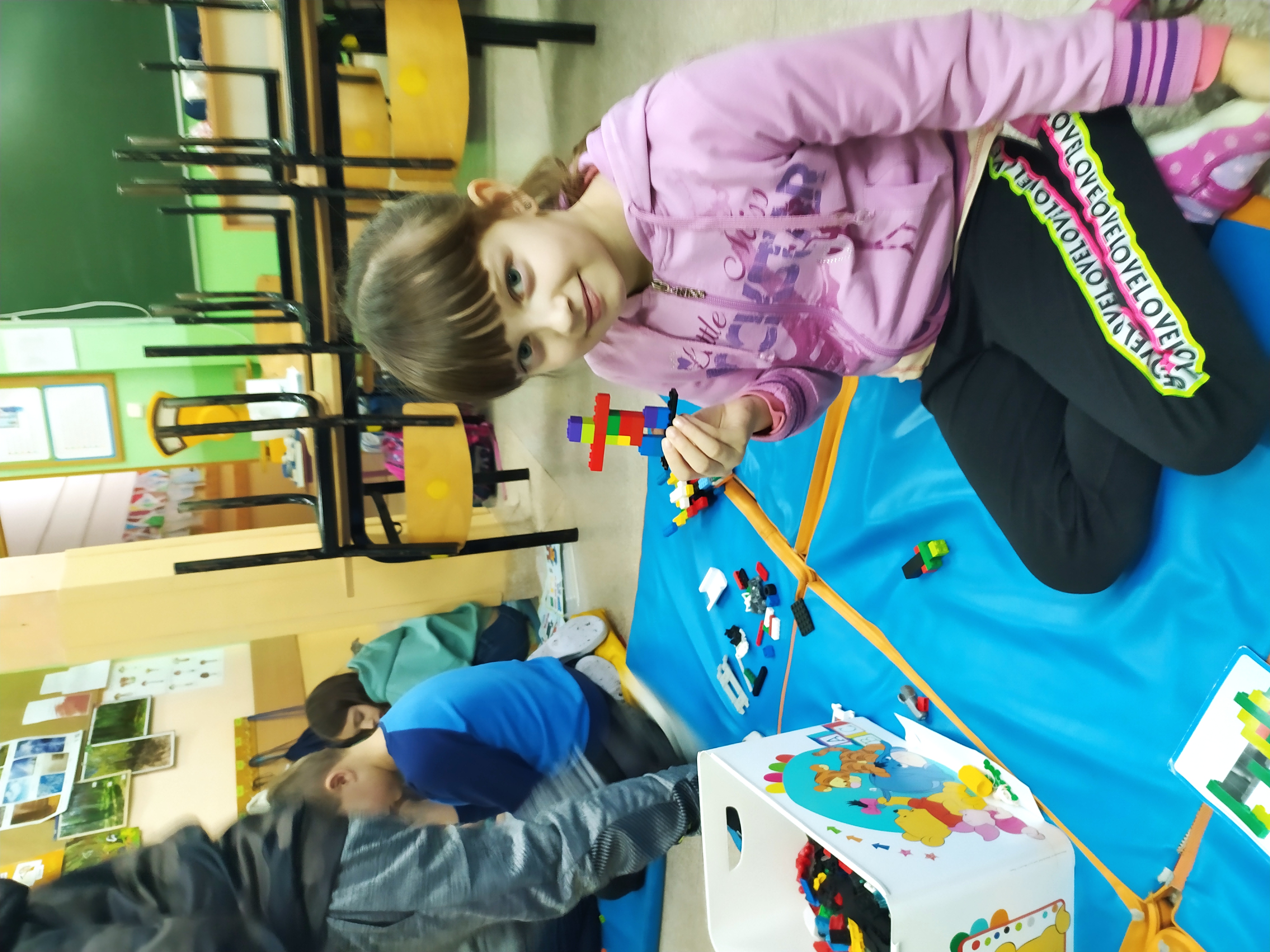 Najpierw dzieci obejrzały film o powstaniu tych popularnych na całym świecie klocków. Potem tworzyły samodzielnie różne budowle, a na koniec zaprojektowali własnego ludzika LEGO. Zajęcia dostarczyły dzieciom dużo radości ze wspólnej zabawy.Galeria