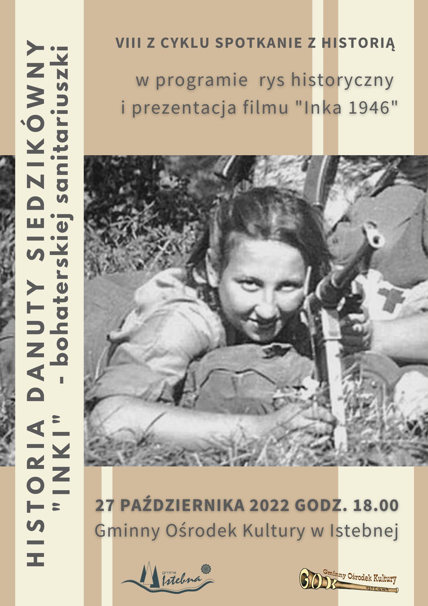 W dniach 27.10.2022 oraz 01.12.2022 uczniowie kl. 7 i 8 skorzystali z zaproszenia Wójta Gminy Istebna - Pani Łucji Michałek-Chudeckiej i licznie przybyli na kolejne lekcje historii.VIII SPOTKANIE Z HISTORIĄ to przejmująca opowieść o dzielnej sanitariuszce i łączniczce Danucie Siedzikównej pseud. Inka z V Brygady Wileńskiej AK mjr. Zygmunta Szendzielarza „Łupaszki", ukazana w dramacie dokumentalnym Wojciecha Tomczyka "Inka 1946".