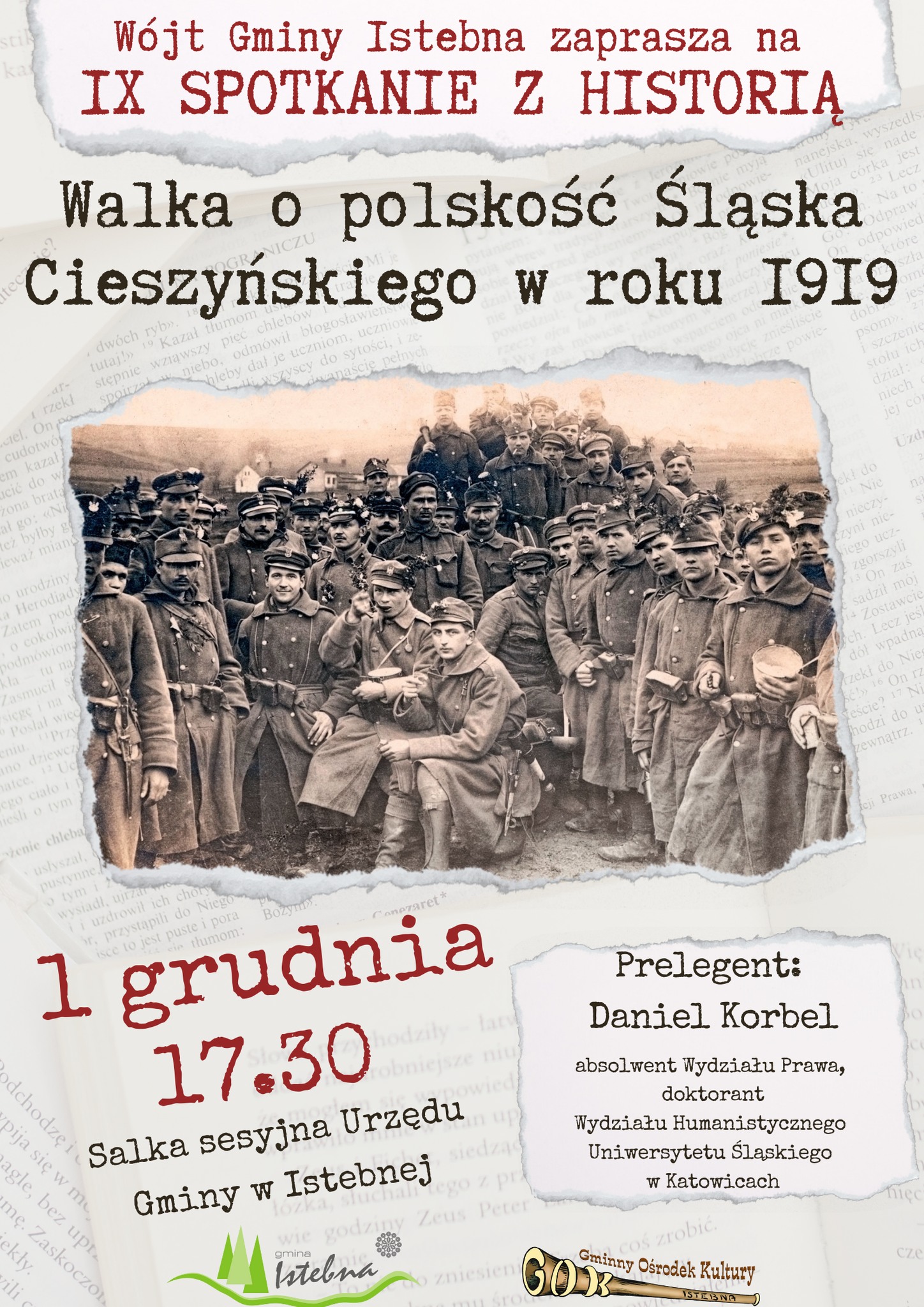 Na IX SPOTKANIU Z HISTORIĄ uczniowie mieli możliwość poznania tematyki wojny polsko – czechosłowackiej toczonej w roku 1919 o tereny Śląska Cieszyńskiego, którą w interesujący sposób przekazał historyk z Uniwersytetu Śląckiego w Katowicach - Pan Daniel Korbel.