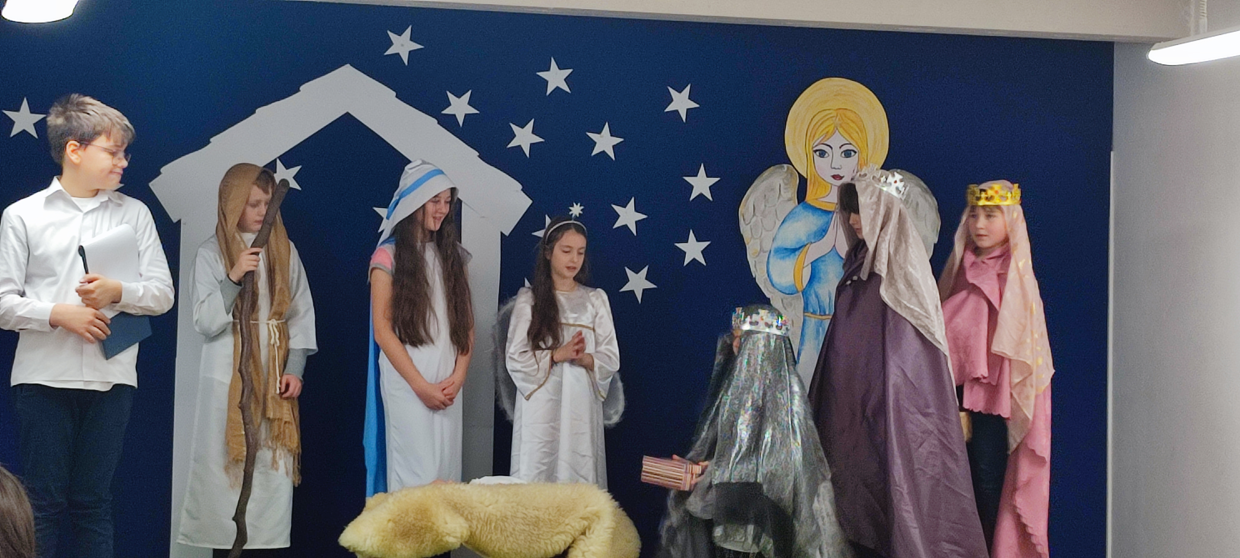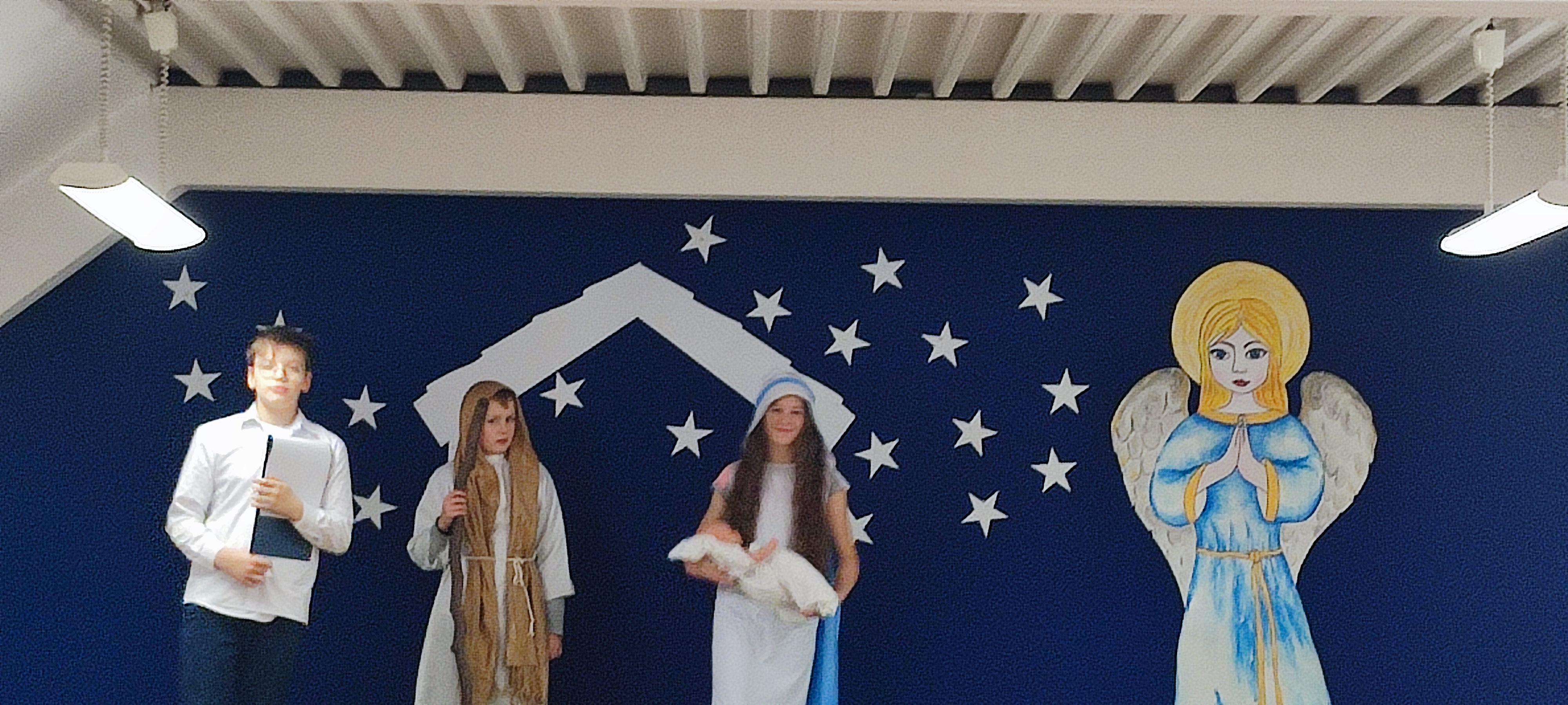 21 grudnia rozpoczęliśmy przerwę świąteczną szkolnymi jasełkami i koncertem kolęd w wykonaniu naszych uczniów. Chcieliśmy nimi wprowadzić wszystkich w nastrój Bożego Narodzenia oraz pokazać, jakie talenty, mniejsze lub większe, kryją się w naszej szkole.Zapraszamy na relację filmową z kolędowania: