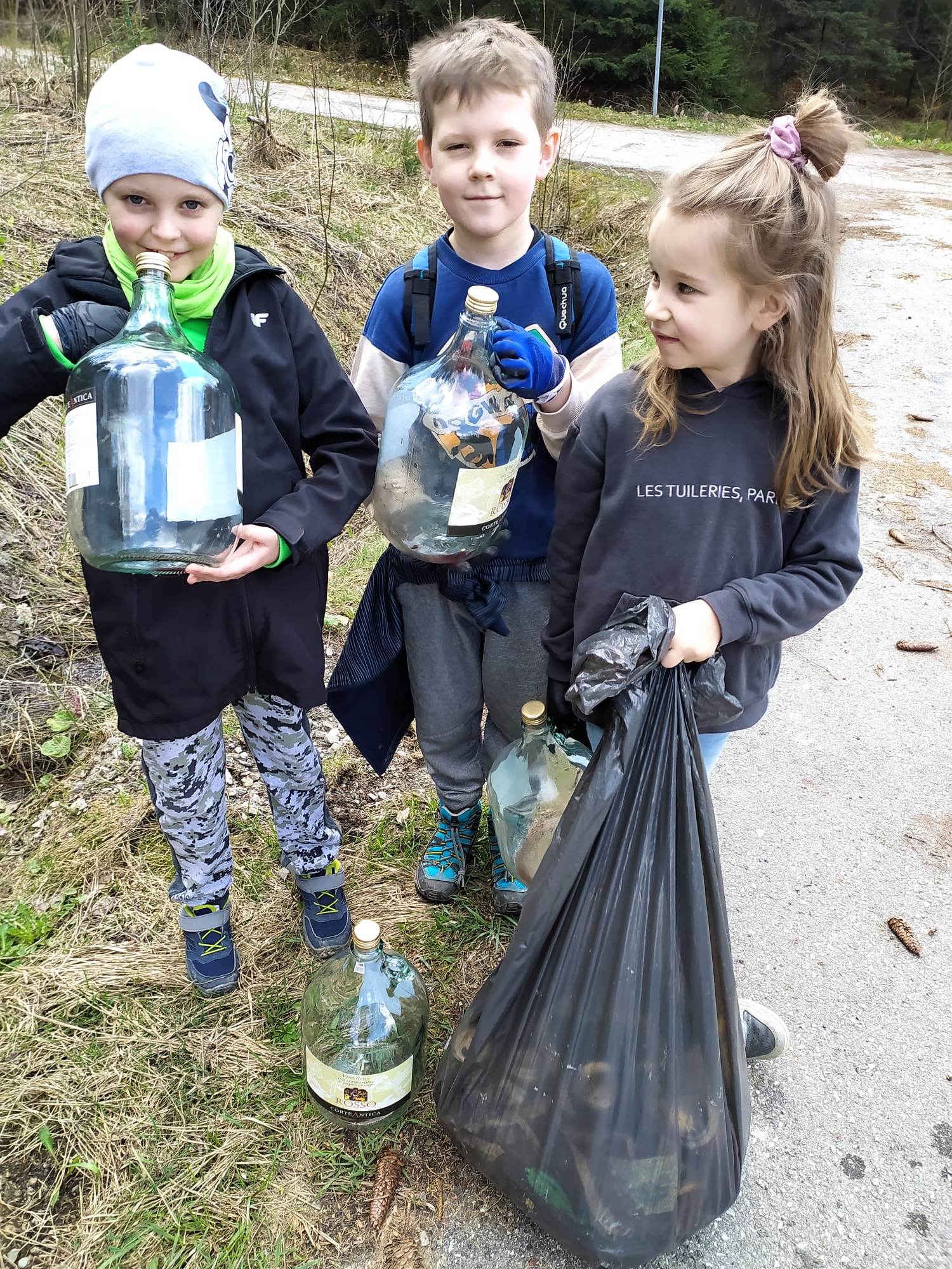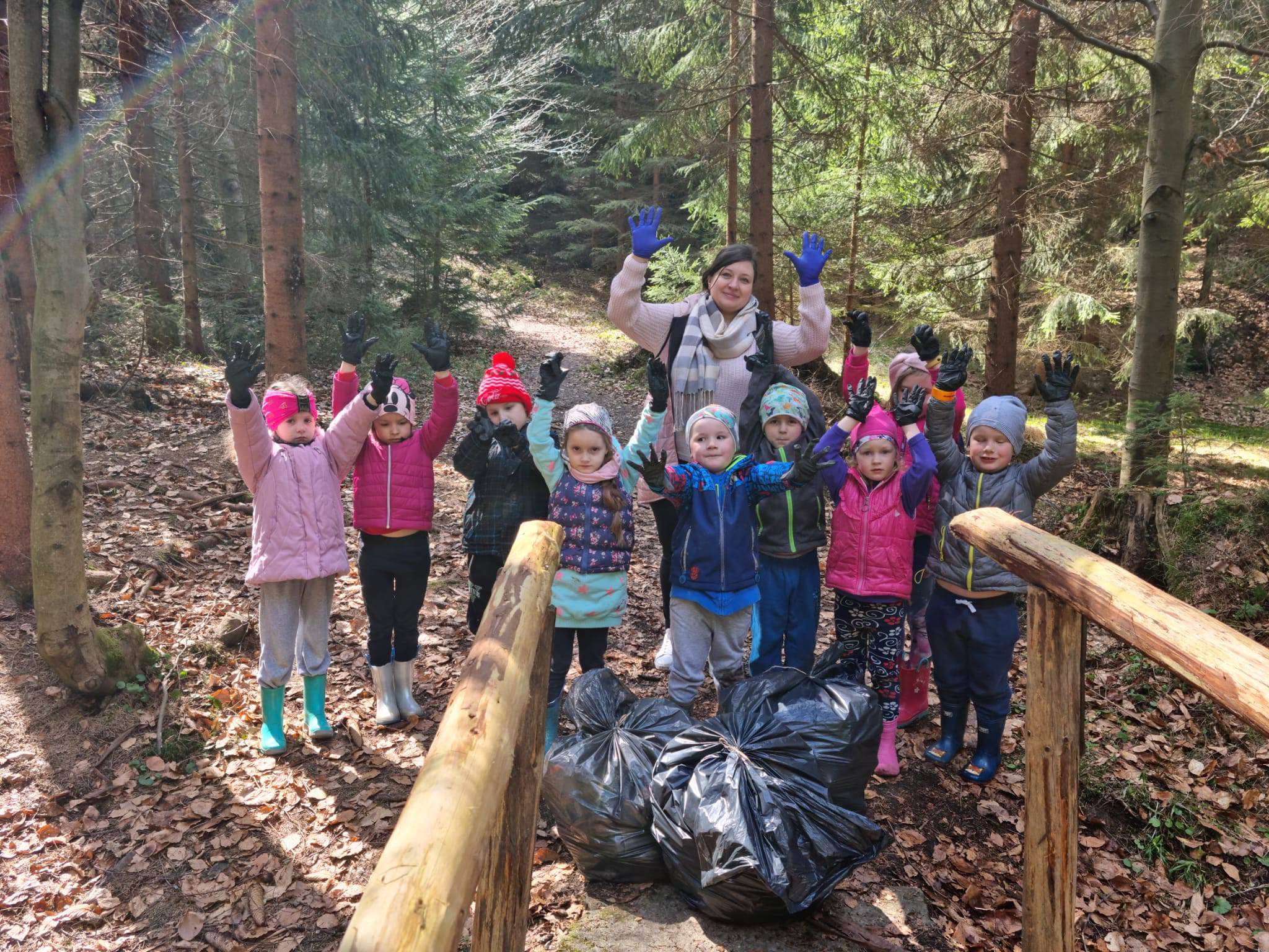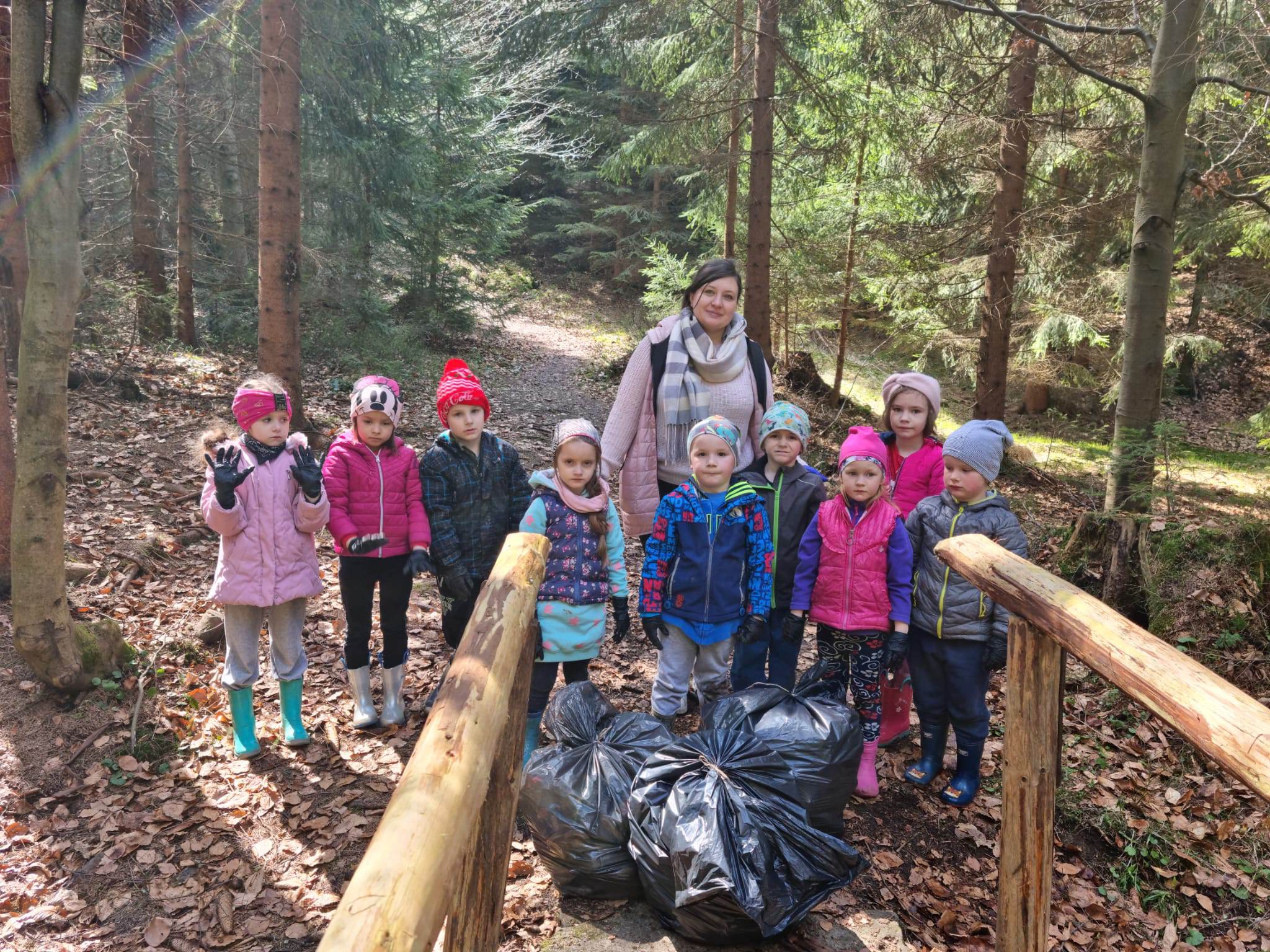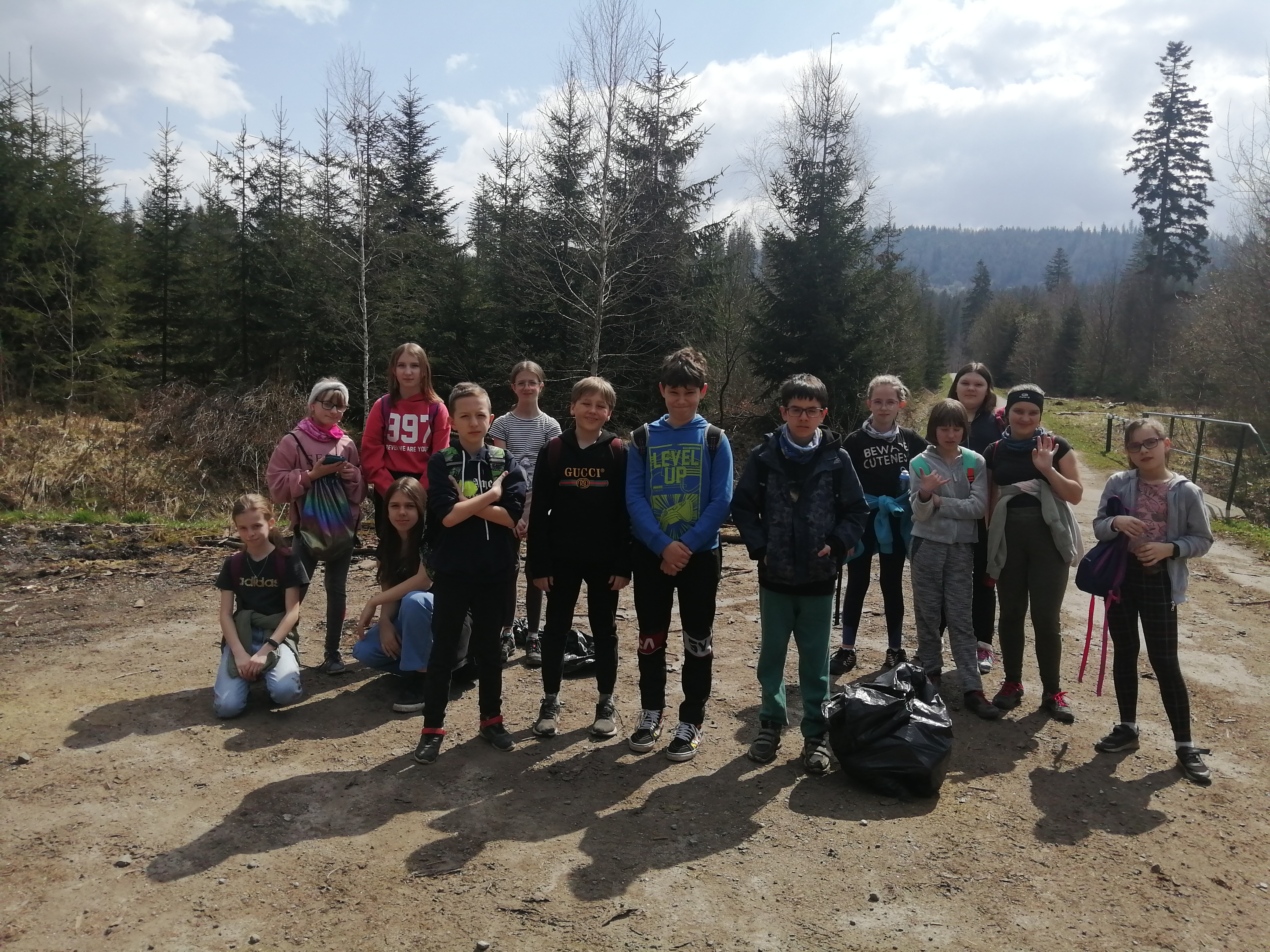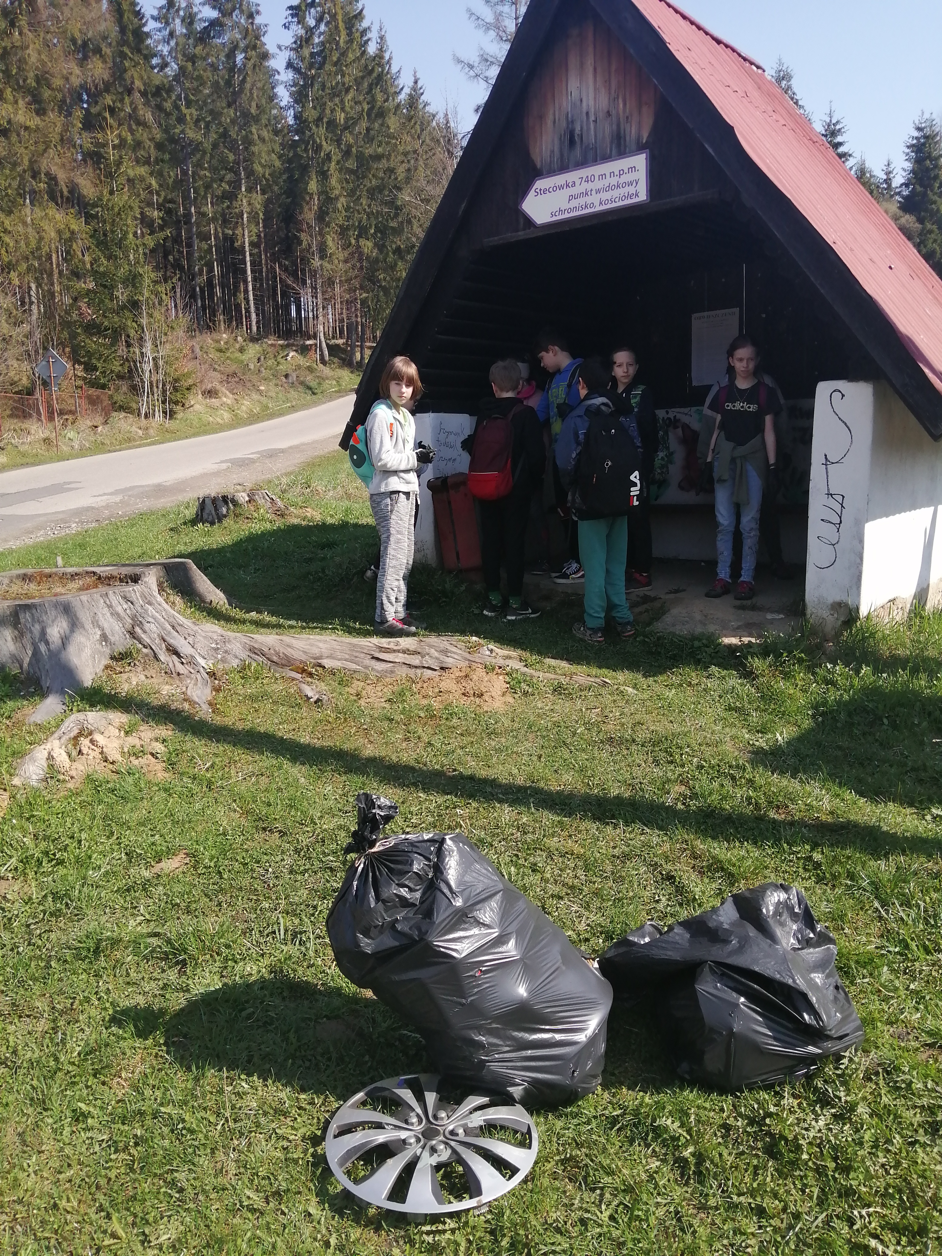 Uczniowie z nauczycielami posprzątali teren od szkoły w stronę Mlaskawki, do schroniska, w stronę Koniakowa do przystanku Pasieki, w stronę Gańczorki, przez Skałę do Pietraszonki, na Stecówkę, drogę leśną od skrzyżowania na Leszczynę, do skrzyżowania Stecówka - Pietraszonka. Zebraliśmy 25 worków śmieci.
