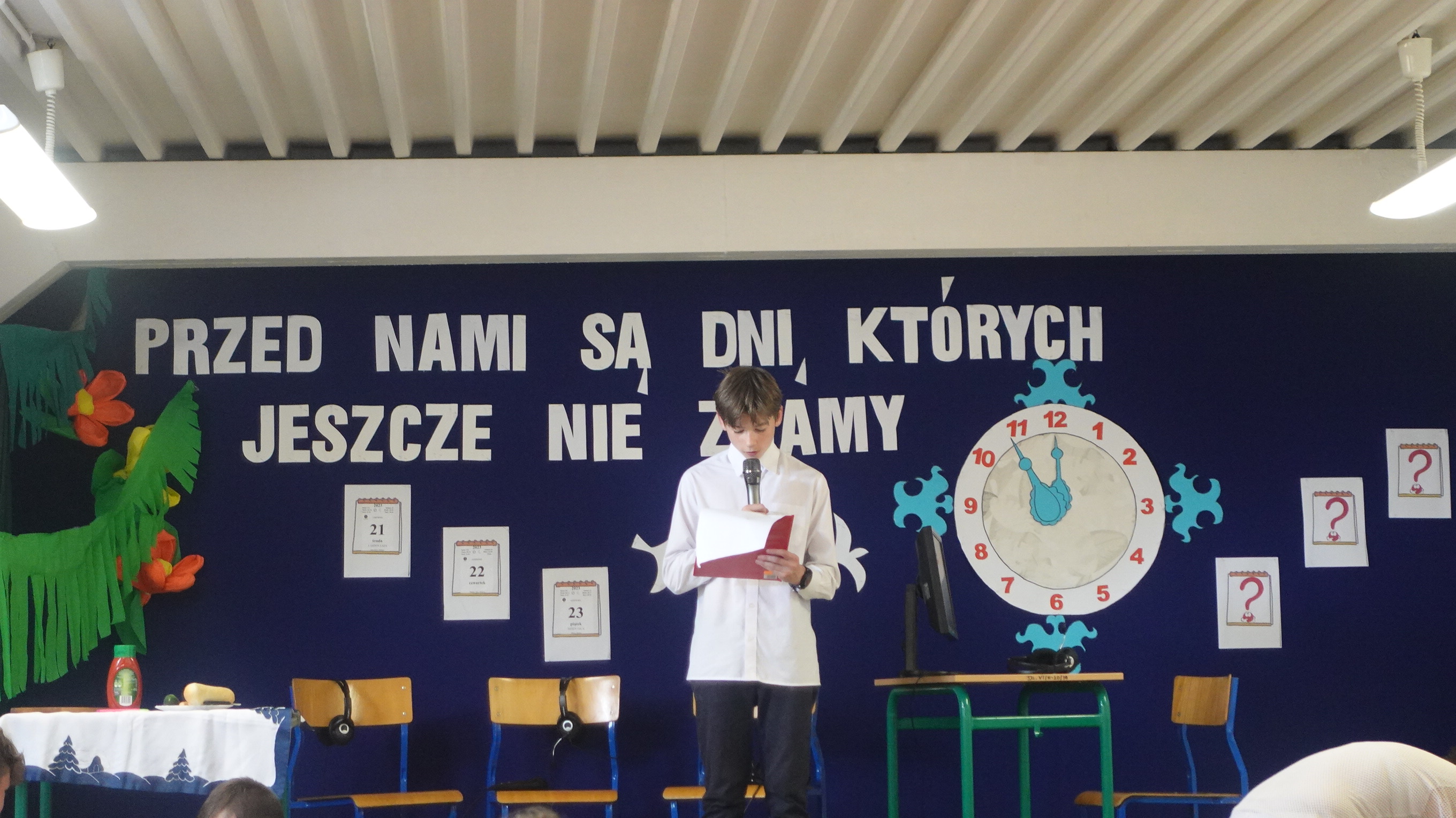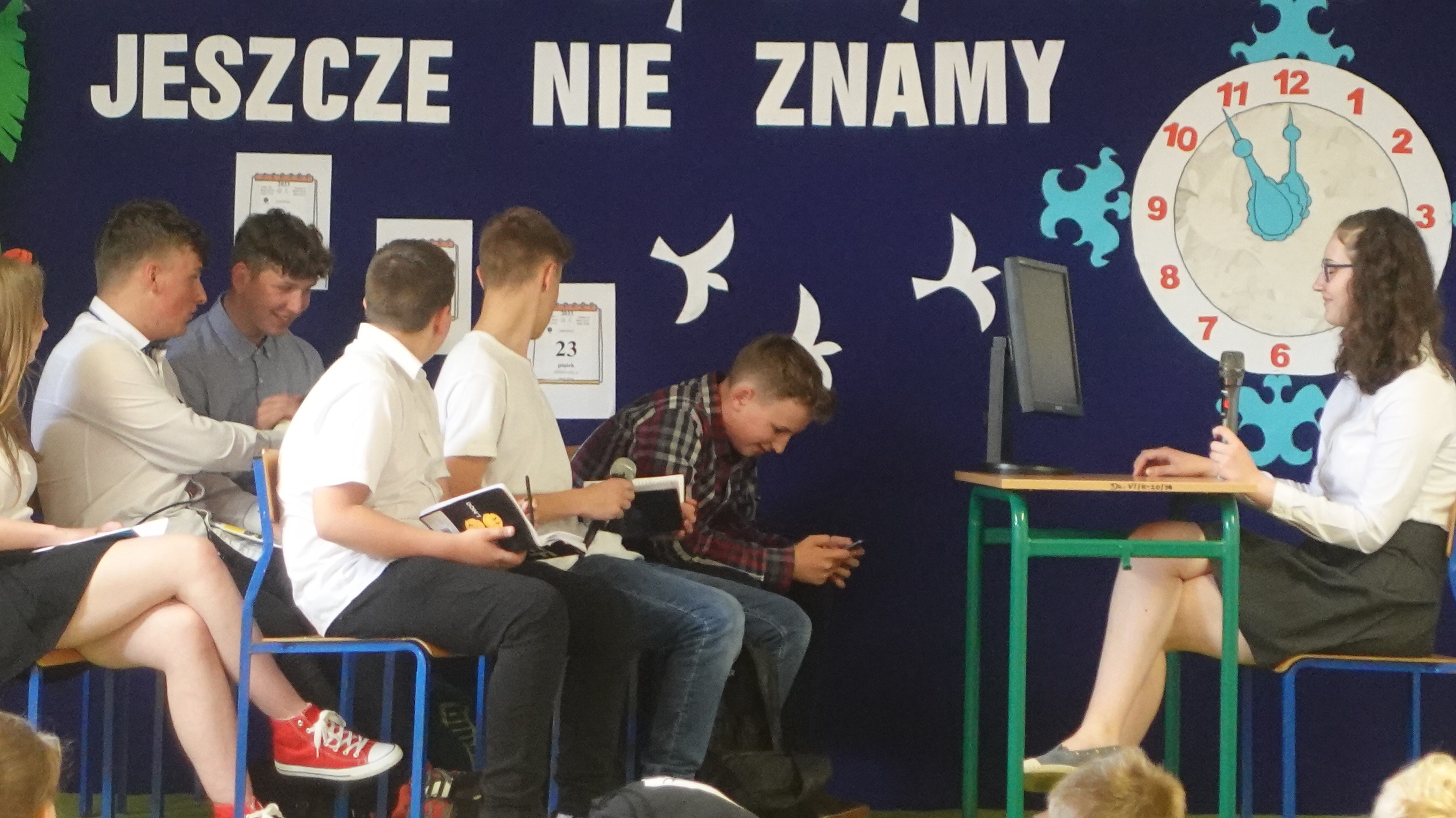Obejrzeliśmy także film i prezentację z ciekawych momentów życia szkolnego naszych ósmoklasistów oraz Basia i Wiktoria zaśpiewały piosenkę Sanah.
