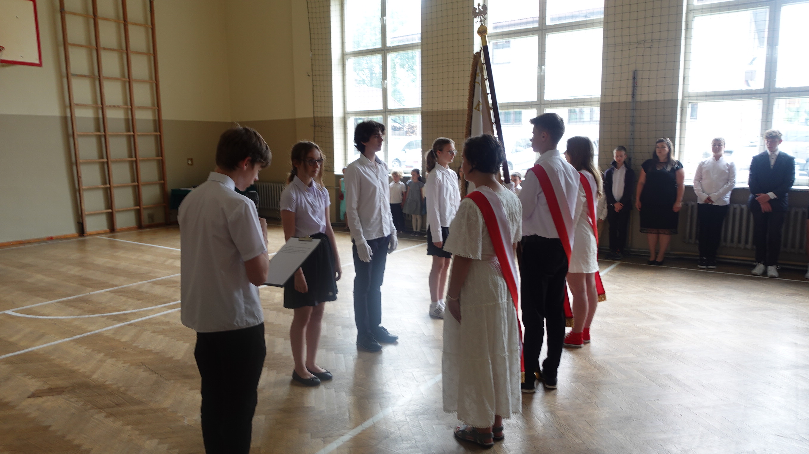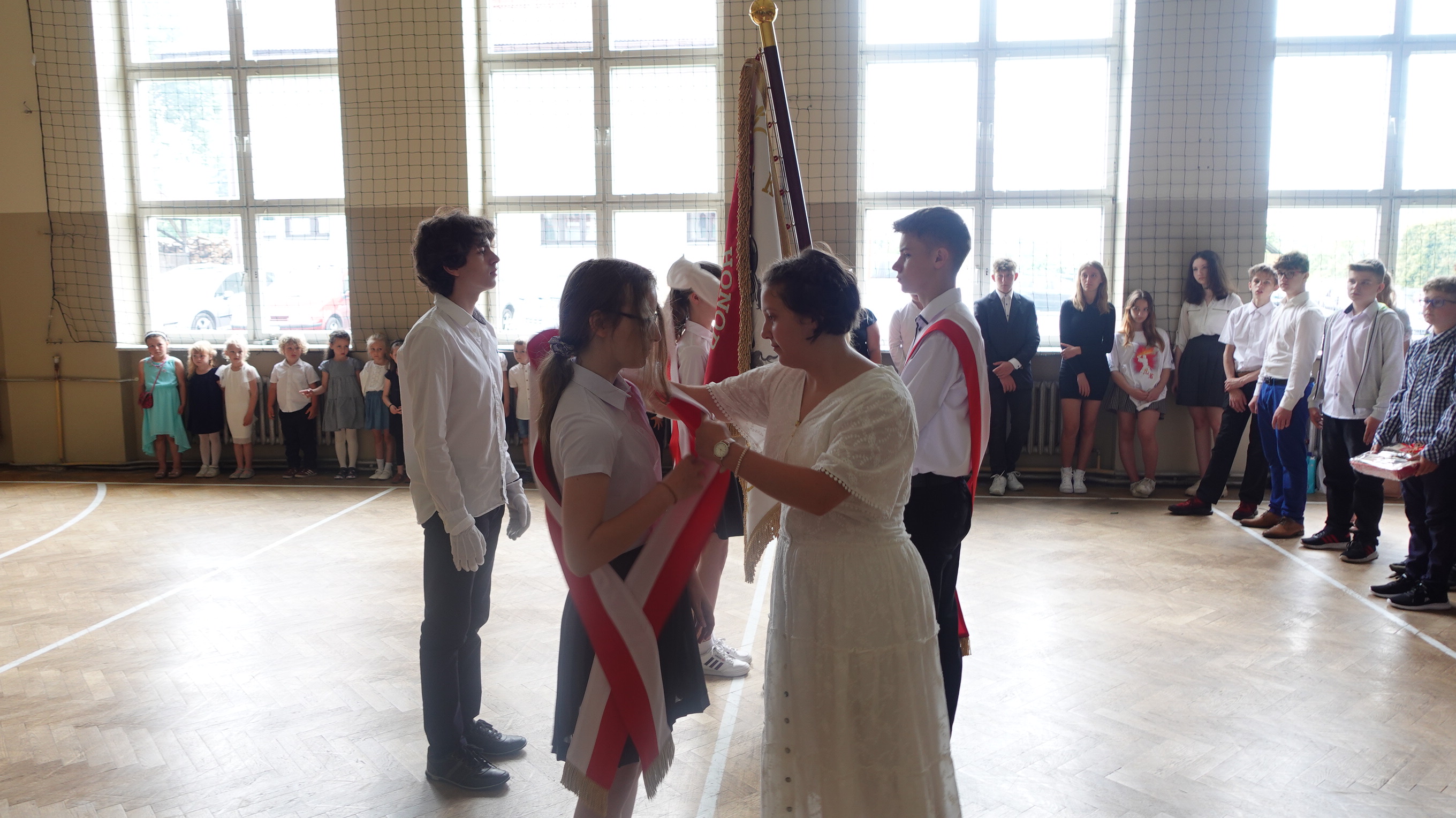 Uroczystość zakończenia roku szkolnego rozpoczęliśmy od mszy św. w Kościele pw. Św. Józefa na Mlaskawce.W pochodzie przeszliśmy w stronę szkoły, gdzie nastąpiło przekazanie sztandaru nowemu pocztowi sztandarowemu oraz odśpiewaliśmy hymn. Następnie uczniowie kl.8 pod czujnym okiem p.Amelii Jałowiczor zatańczyli poloneza.
