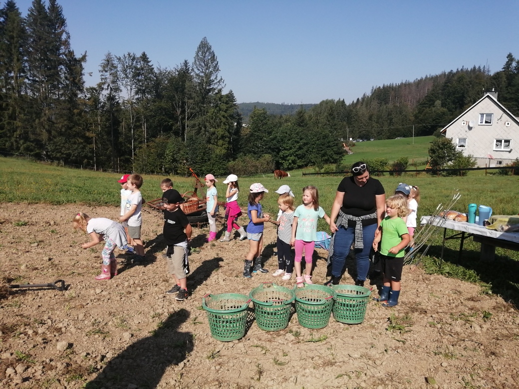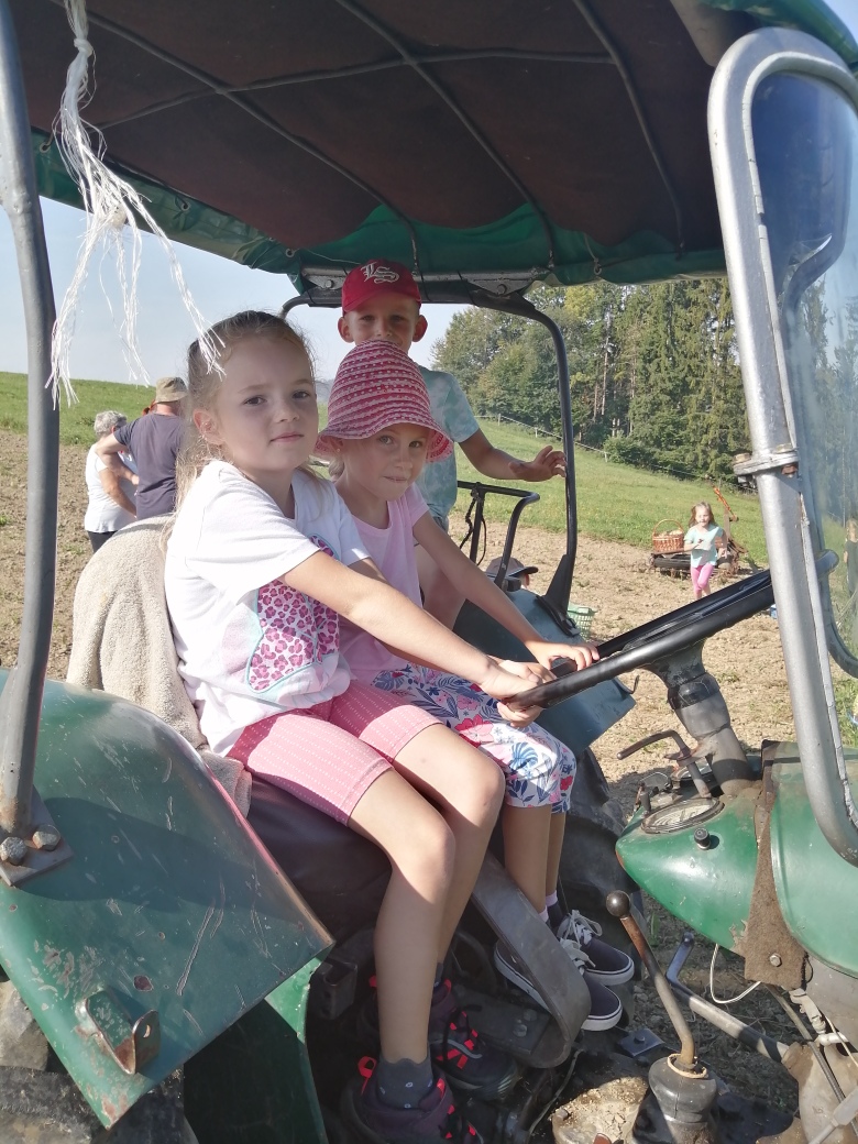 Dzieci z oddziału przedszkolego oraz kl. 1 wybrały się do Leszczyny na coroczną akcję zbierania ziemniaków. W gospodarstwie państwa Michałek dzieci zapoznały się z jesiennymi pracami polowymi - wykopkami. Ochoczo uczestniczyły w pracach, by poźniej upiec ziemniaki w ognisku. Pieczenie kiełbasek w upalny dzień nad ogniskiem był dla dzieci nie lada wyzwaniem. Dzieci bawiły się doskonale!!!Bardzo dziękujemy za zaangażowanie w przygotowanie tego dnia gospodarzom p. Annie i Kazimierzowi Michałek, rodzicom: Roksanie i Andrzejowi Michałek oraz Krystynie Wrzask.