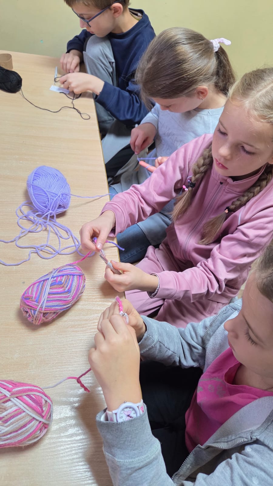 Przy herbatce i miękkim kłębku włóczki dzieci uczą się nowych umiejętności, integrują się, dzielą pomysłami i odkrywają, że rękodzieło to nie tylko technika, ale też sposób na budowanie relacji.Zapraszamy wszystkich chętnych, którzy chcą nauczyć się czegoś nowego i spędzić wartościowy czas. Wystarczy odrobina ciekawości i chęć do wspólnego tworzenia. Naukę szydełkowania prowadzi mistrzyni szydełkowania - uczennica klasy 8 - Ewelina Bocek.