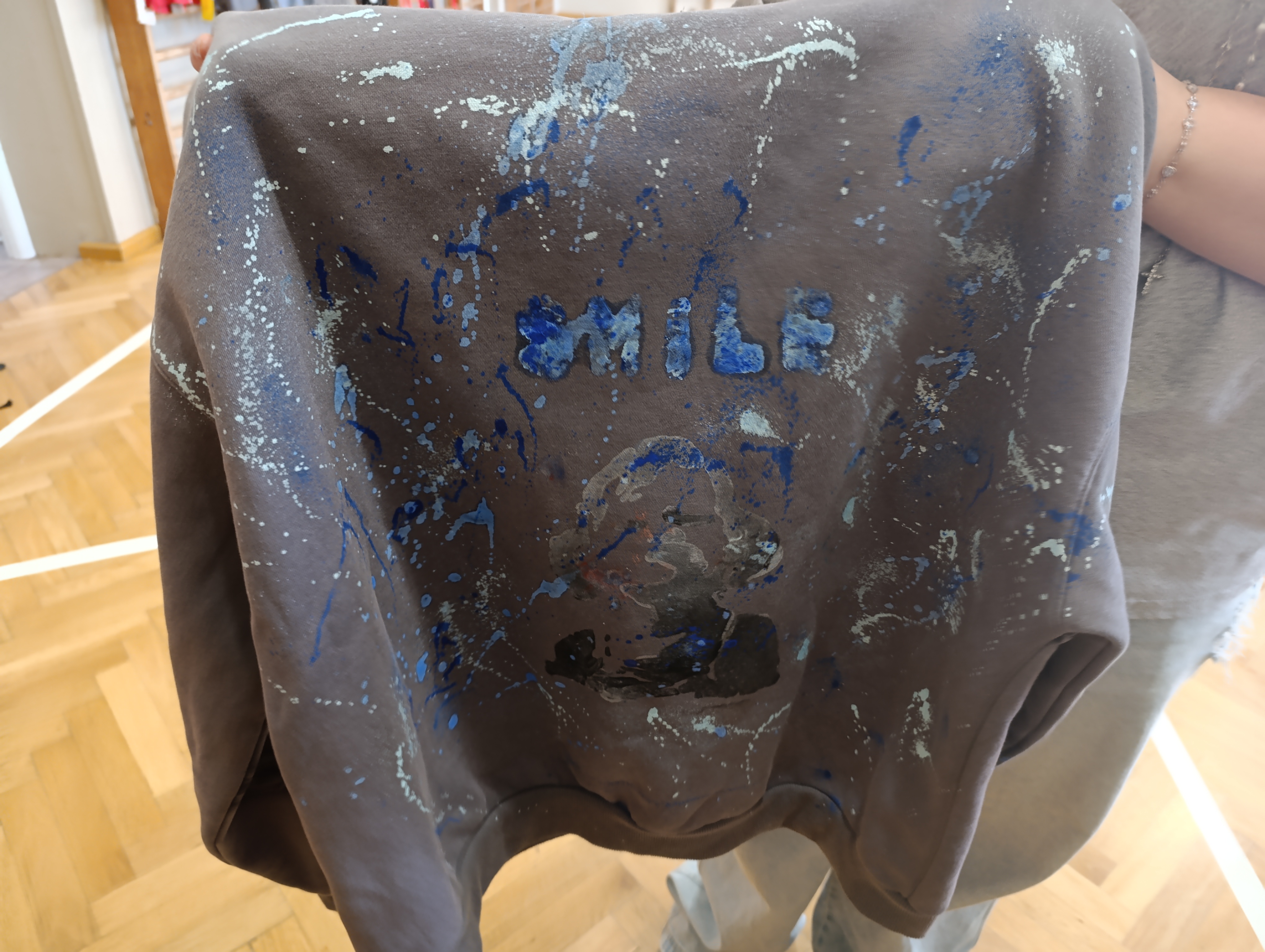 Sweter z dziurą → sweter z dekoracyjną łatą lub haftem