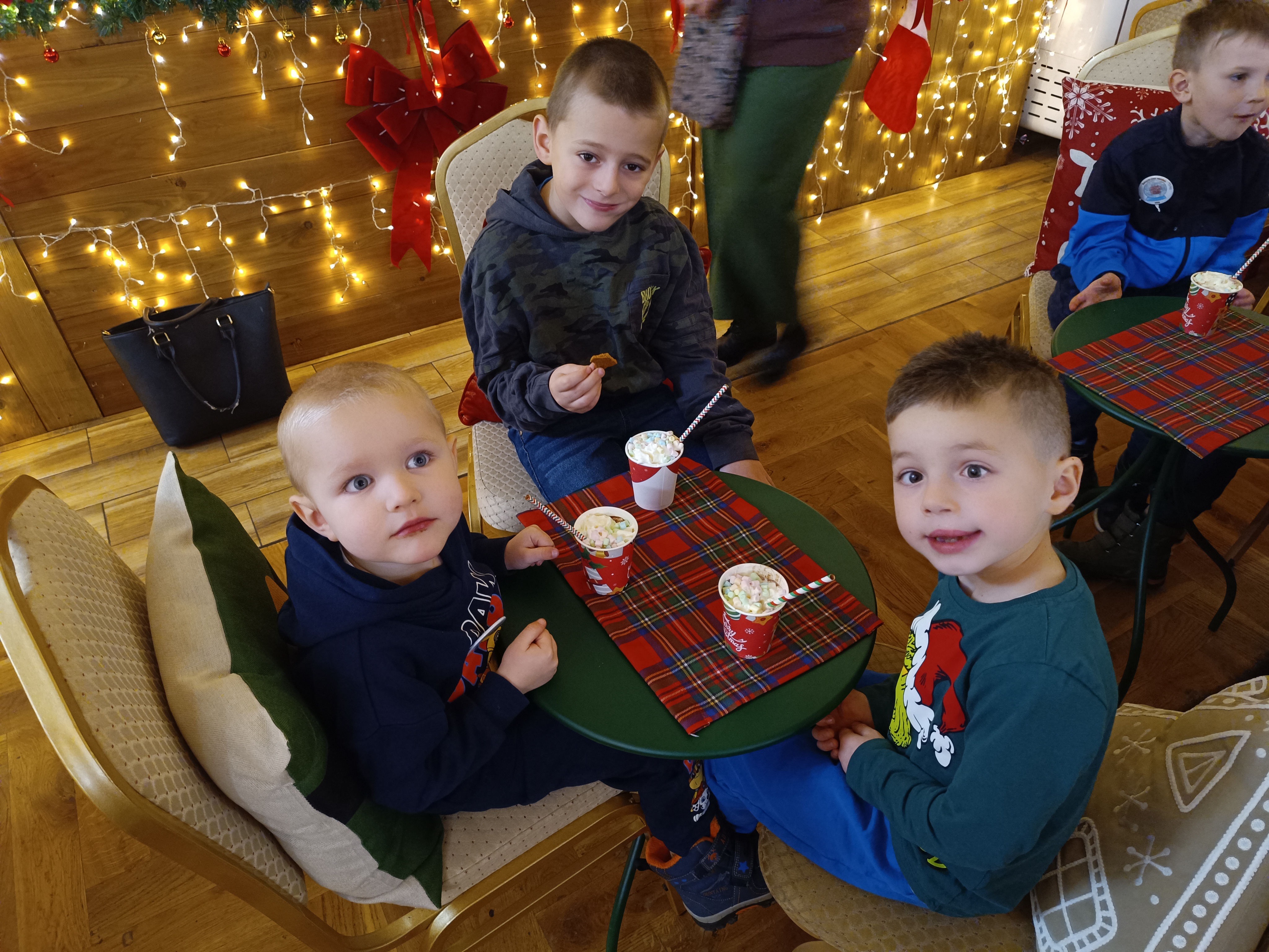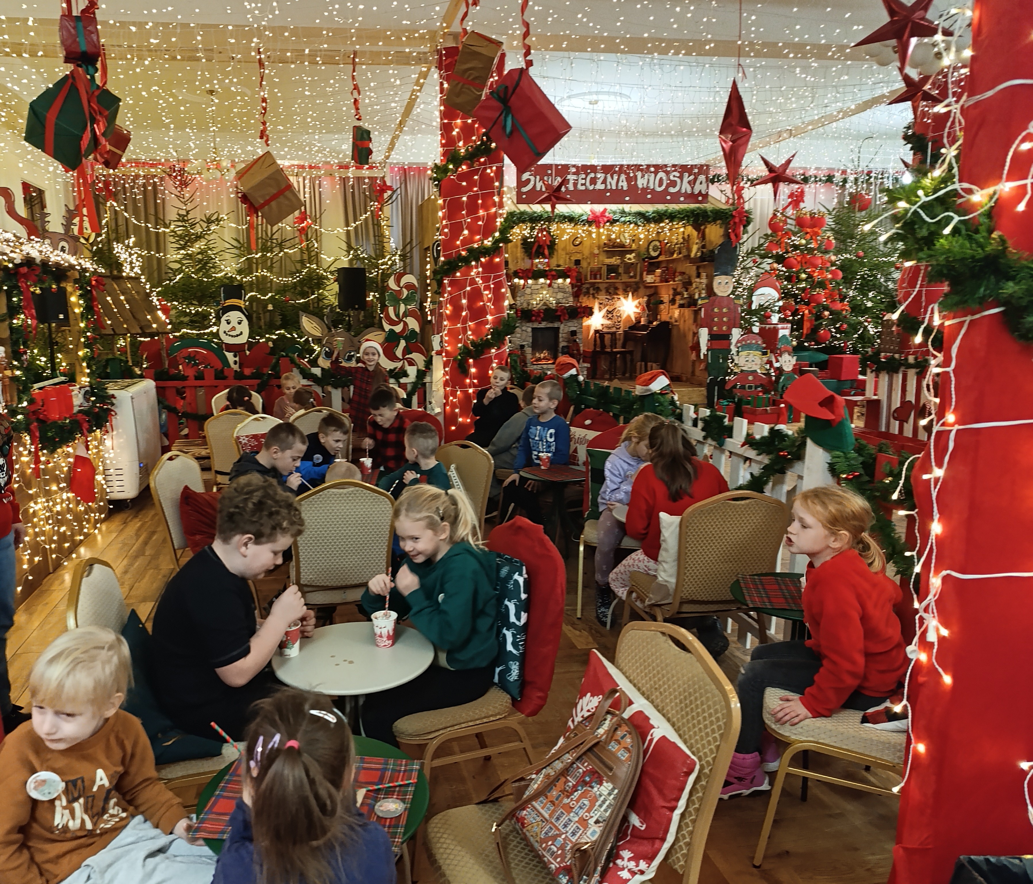 Dzieci z oddziału przedszkolnego oraz klas 1 i 3 wybrały się na wyjątkową wycieczkę do Świątecznej Wioski w Koniakowie. Już od pierwszych chwil zachwycały się cudownymi, bajkowymi dekoracjami, które wprowadzały w prawdziwie świąteczny nastrój.Podczas warsztatów każdy uczestnik mógł wykonać własny, niepowtarzalny magnes oraz przypinkę, co sprawiło najmłodszym wiele radości i satysfakcji. Po twórczej pracy czekała na dzieci pyszna gorąca czekolada, ufundowana przez Radę Rodziców – serdecznie dziękujemy za ten słodki prezent!