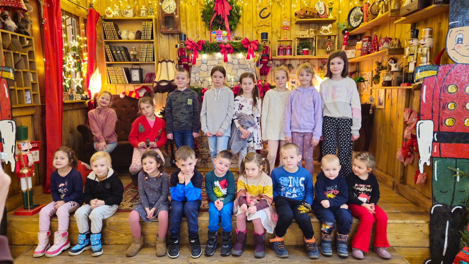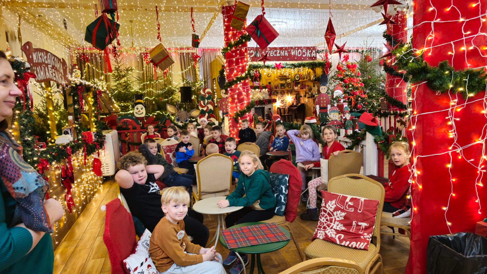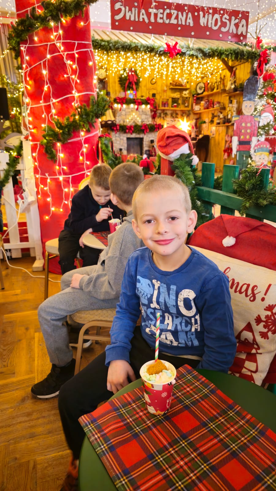Dzieci z oddziału przedszkolnego oraz klas 1 -3 wybrały się na wyjątkową wycieczkę do Świątecznej Wioski w Koniakowie. Już od pierwszych chwil zachwycały się cudownymi, bajkowymi dekoracjami, które wprowadzały w prawdziwie świąteczny nastrój.Podczas warsztatów każdy uczestnik mógł wykonać własny, niepowtarzalny magnes oraz przypinkę, co sprawiło najmłodszym wiele radości i satysfakcji. Po twórczej pracy czekała na dzieci pyszna gorąca czekolada, ufundowana przez Radę Rodziców – serdecznie dziękujemy za ten słodki prezent!
