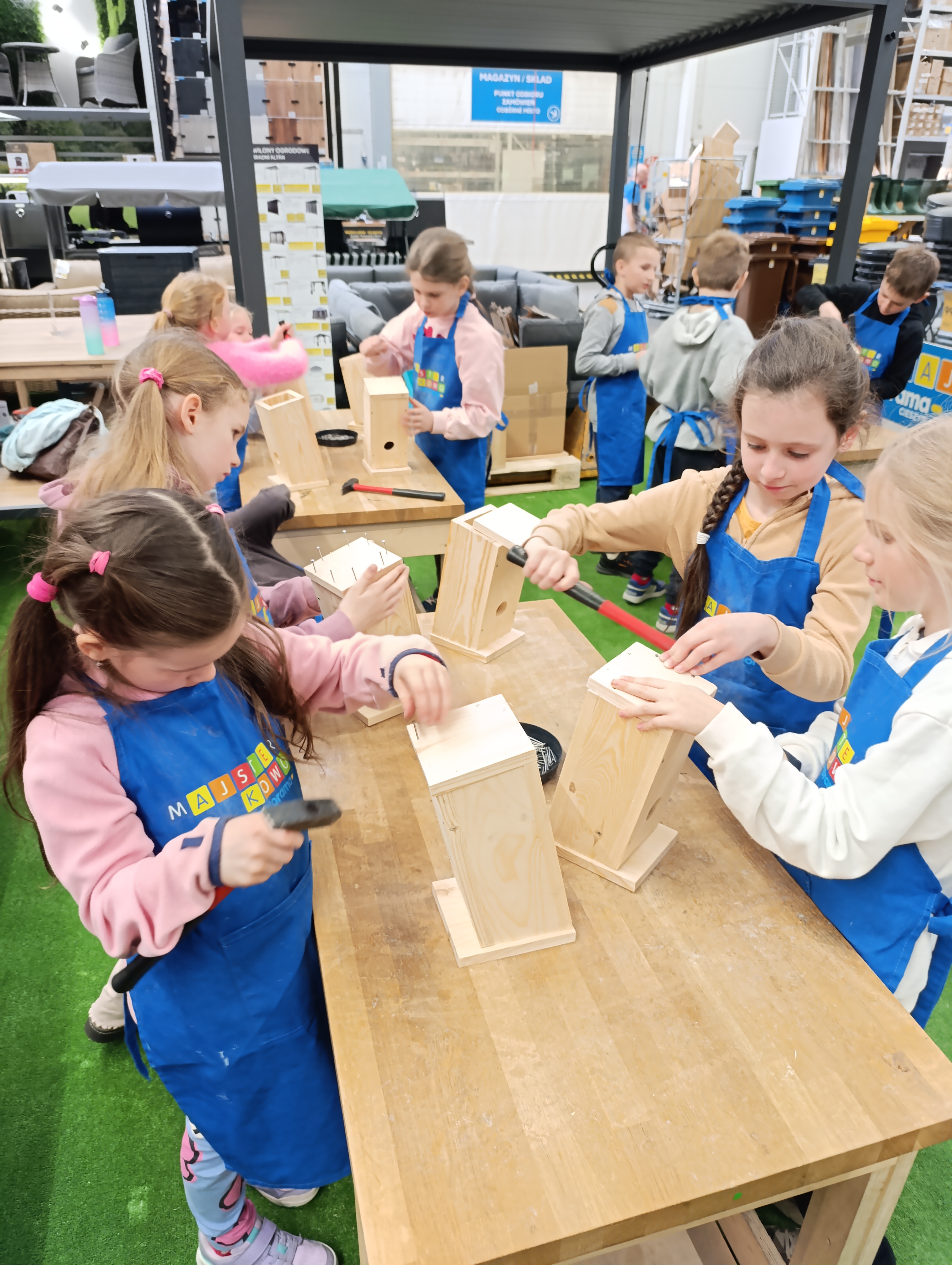 12 marca uczniowie klas 1–3 wzięli udział w warsztatach majsterkowania zorganizowanych w Castoramie. Podczas zajęć dzieci miały okazję rozwijać swoje zdolności manualne oraz pobudzać wyobraźnię, samodzielnie wykonując budki lęgowe dla ptaków.Pod okiem prowadzących uczniowie z dużym zaangażowaniem zbijali gwoździami drewniane deski, tworząc konstrukcje budek. Następnie ozdabiali je według własnych pomysłów, wykazując się kreatywnością i starannością. Warsztaty były doskonałą okazją do odkrywania nowych pasji oraz rozwijania umiejętności pracy ręcznej.
