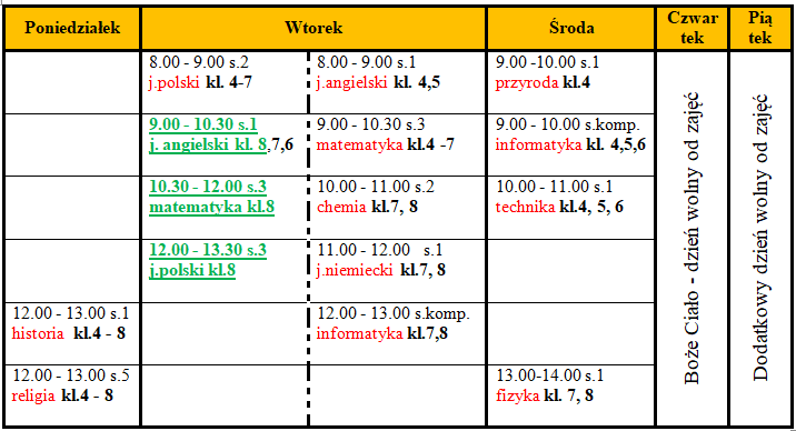 Harmonogram dla klasy 8 pozostaje bez zmian.